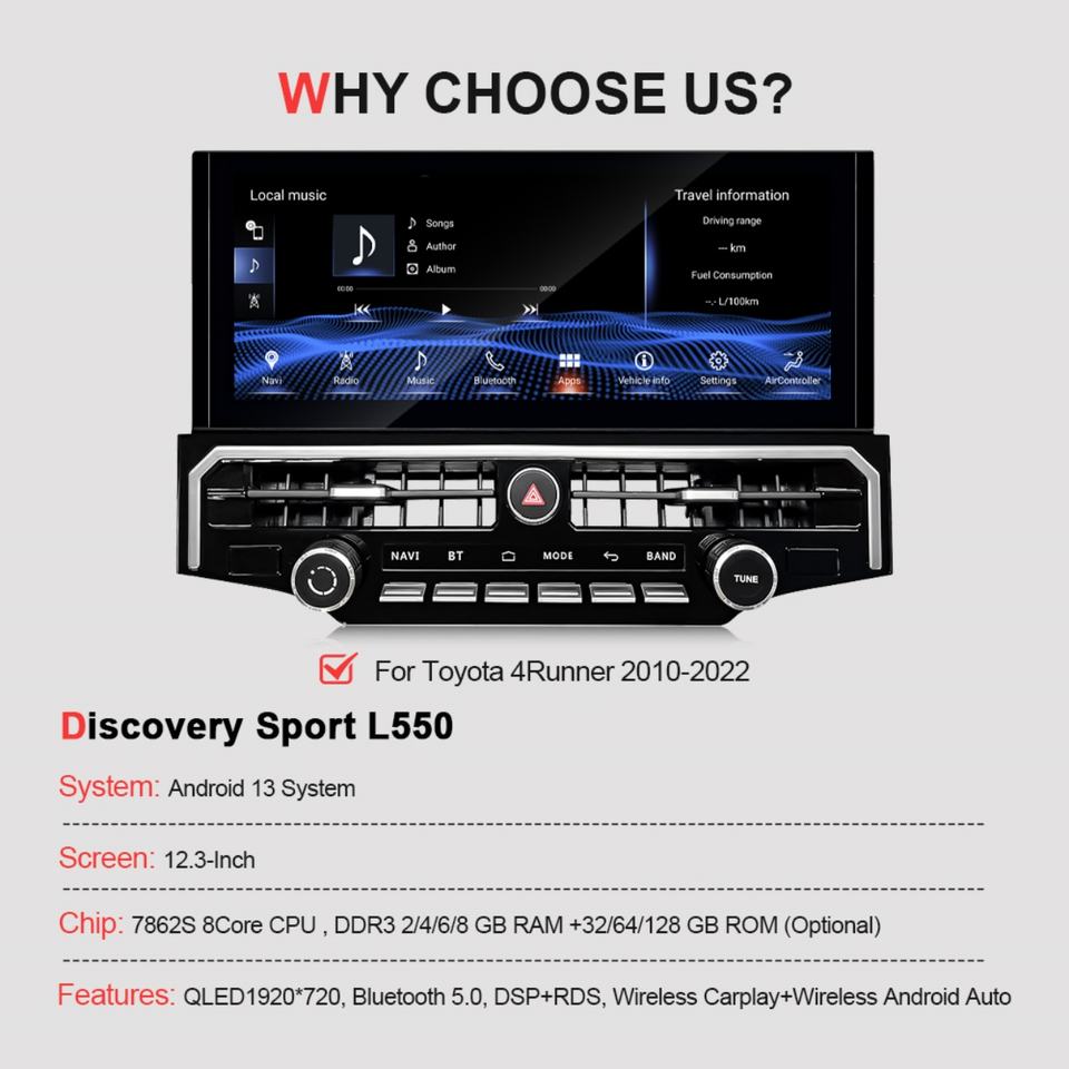 Autoradio Android Navihua 12,3 pouces, lecteur vidéo, GPS, navigation, Carplay pour Toyota 4Runner 2010-2022, Apple Carplay