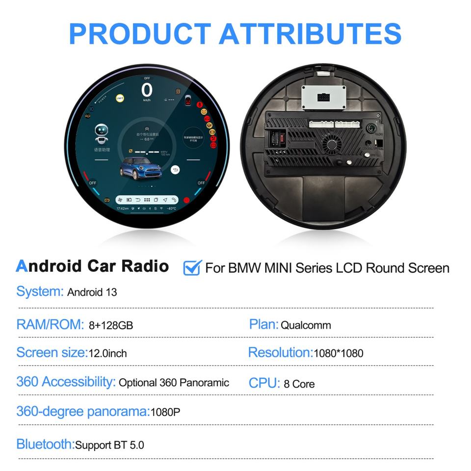 Autoradio Android Navihua 12 pouces à écran tactile rond pour BMW MINI F54 F55 F56 F60 NBT EVO, GPS DVD