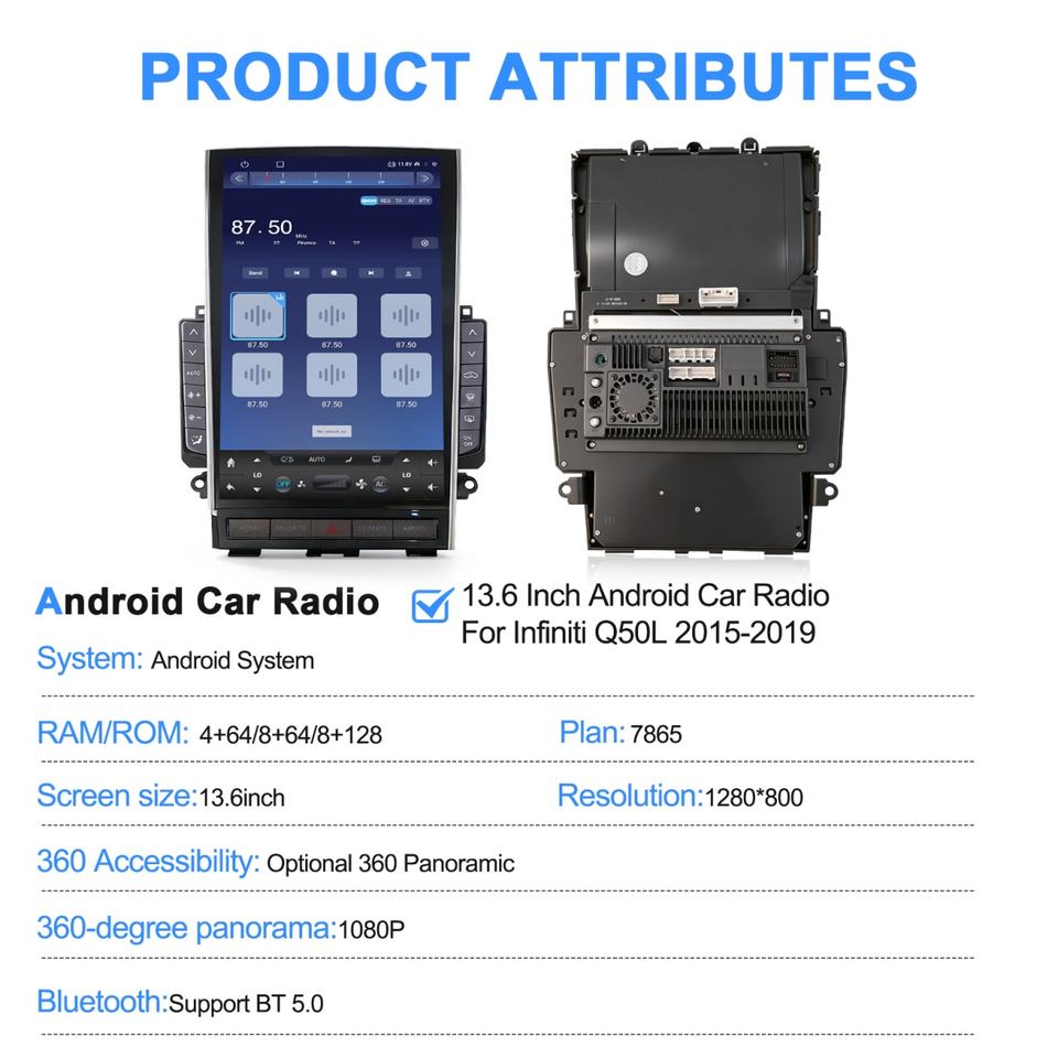 Autoradio Android Navihua 13,6 pouces avec écran tactile, Carplay, GPS, navigation, unité multimédia stéréo pour Infiniti Q50 Q50L 2015-2019