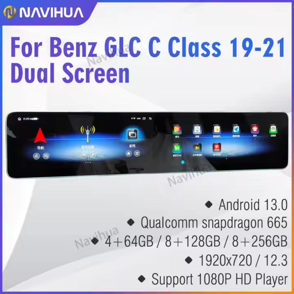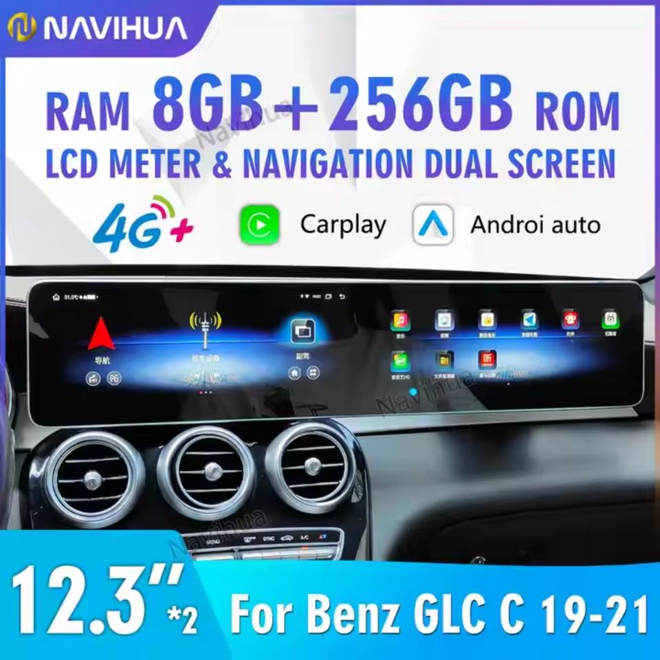 Autoradio multimédia Android à double écran Navihua avec GPS et Carplay pour Benz C W205 GLC X253 NTG 5.0 5.5 6.0 2015-2022