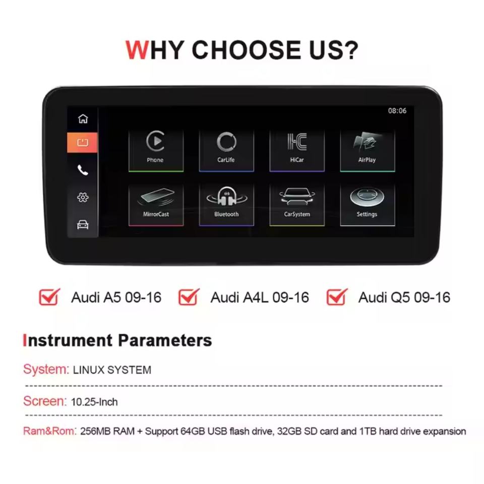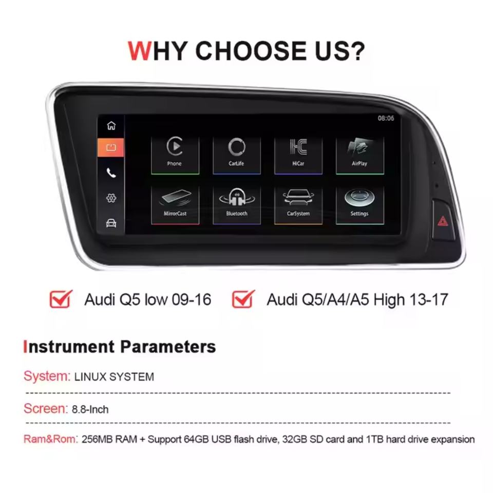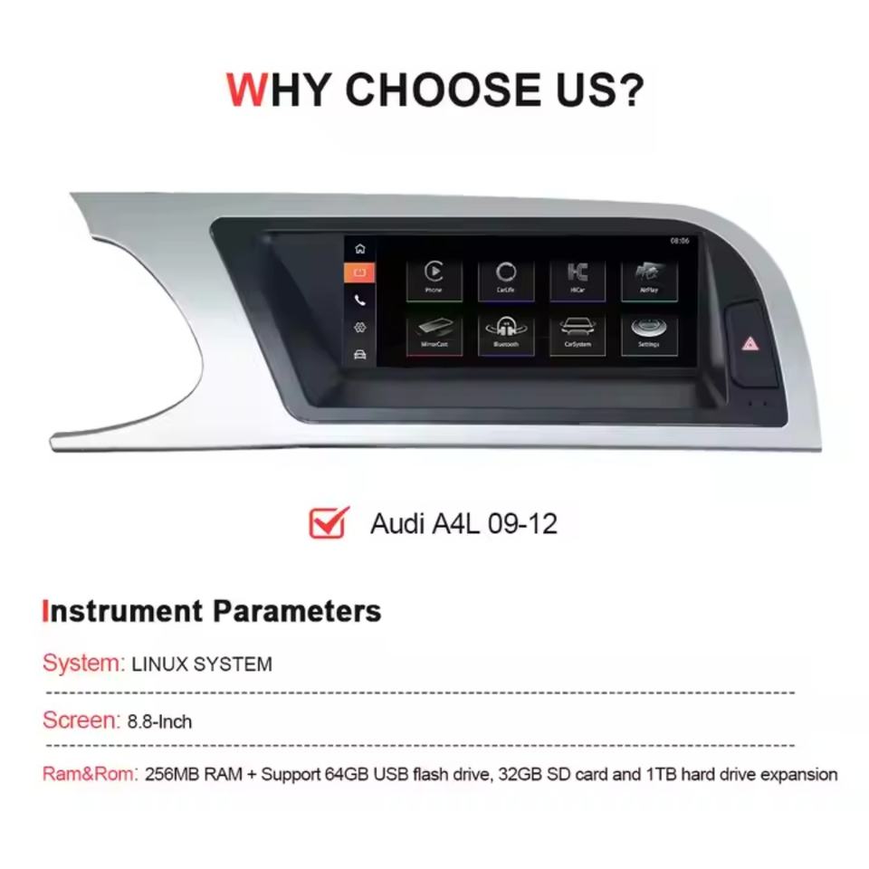 Autoradio Android Navihua pour Audi A4L A4 Q5, écran de voiture, CarPlay sans fil, système Linux, navigation GPS, autoradio stéréo