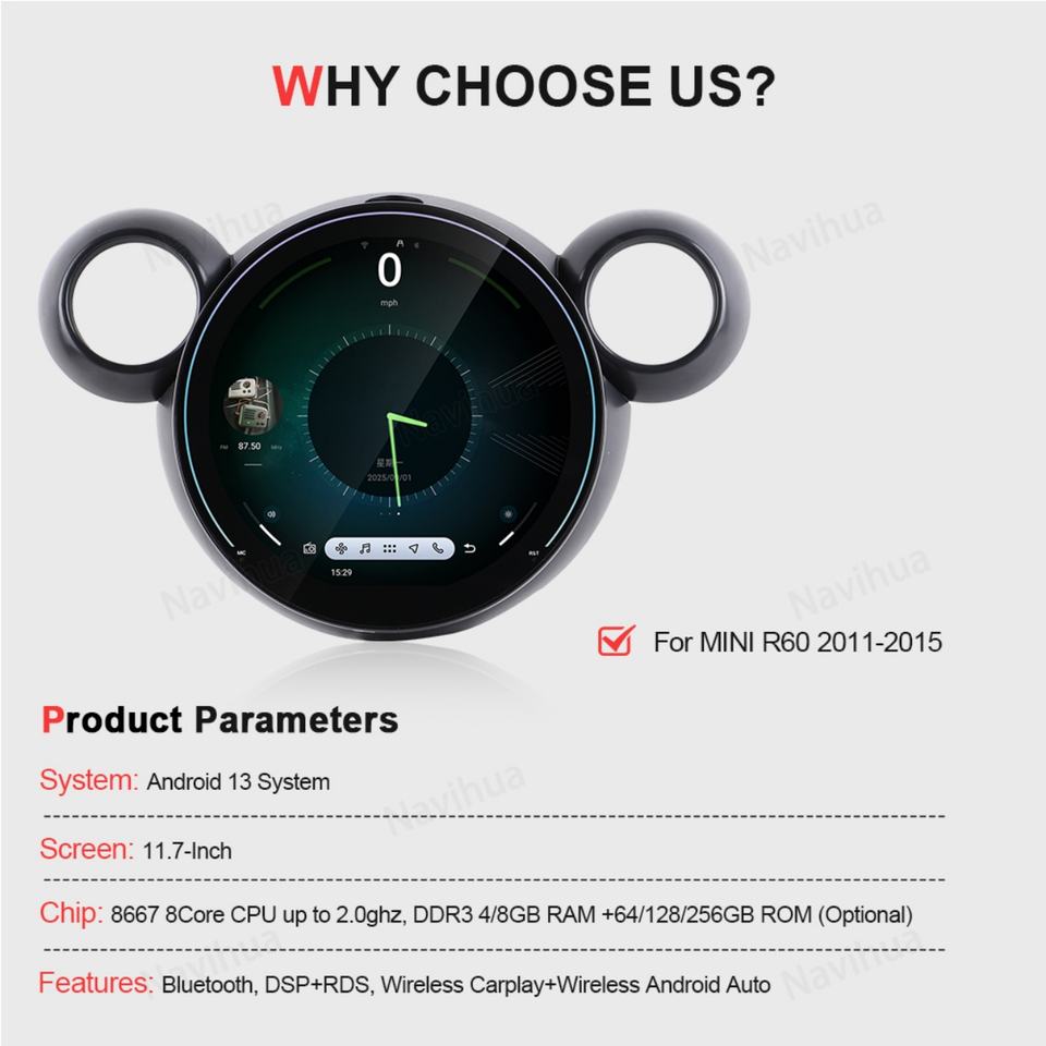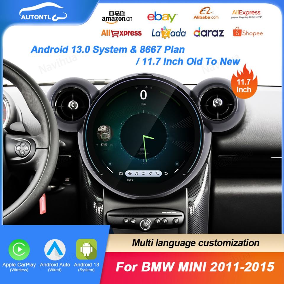 Navihua Nouveau Design Écran Multimédia Android 11,7'' pour Voiture avec Carplay, Navigation GPS et Autoradio pour BMW MINI R60 2011-2015