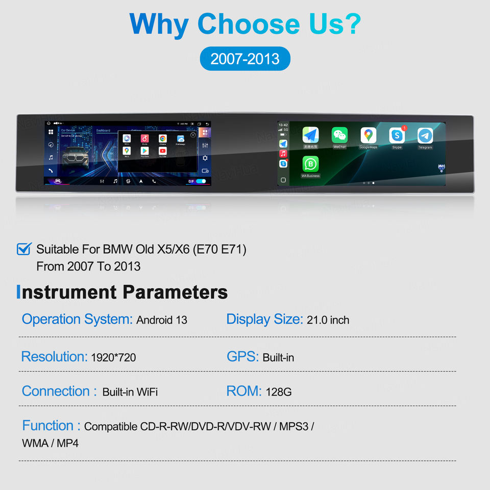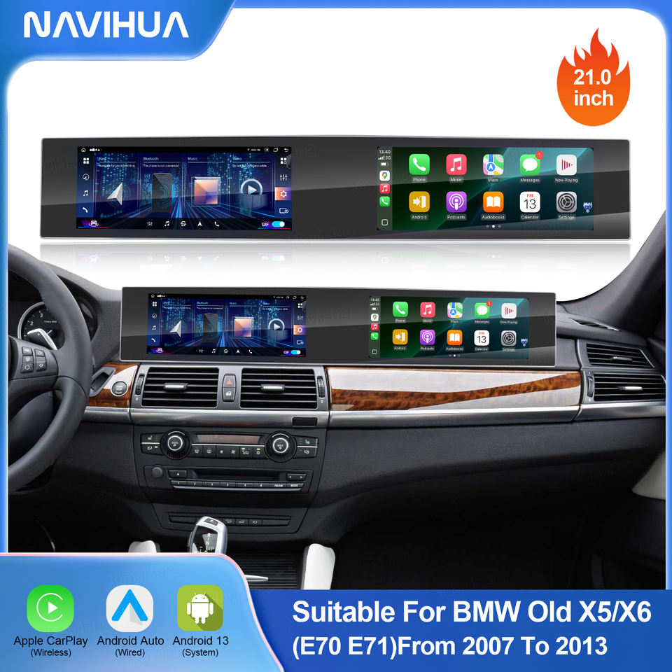 Autoradio multimédia Navihua nouvelle conception pour lecteur DVD Android double écran Carplay GPS pour BMW X5 E70 X6 E71 CCC CIC 2007-2013