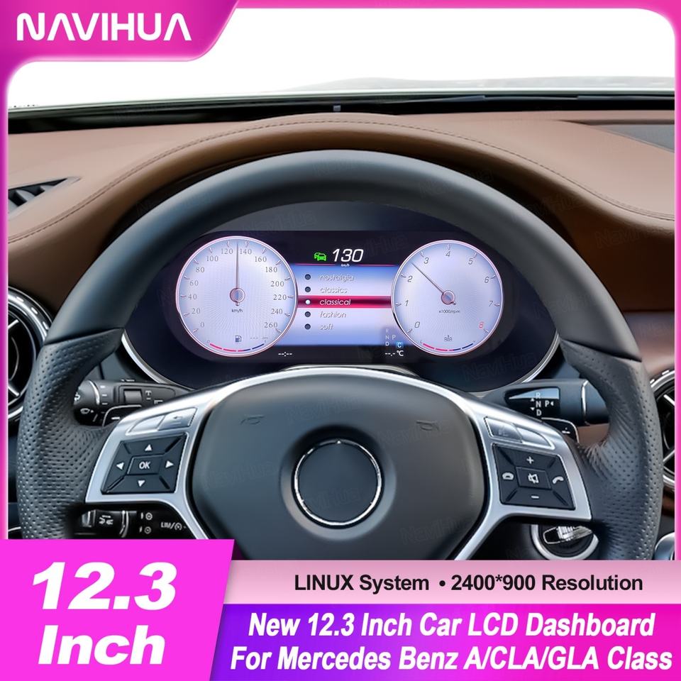 Navihua Nouveau design de tableau de bord numérique, compteur de vitesse automatique, écran LCD de voiture, système Linux avec Carplay pour Benz a CLA GLA 2013-2019