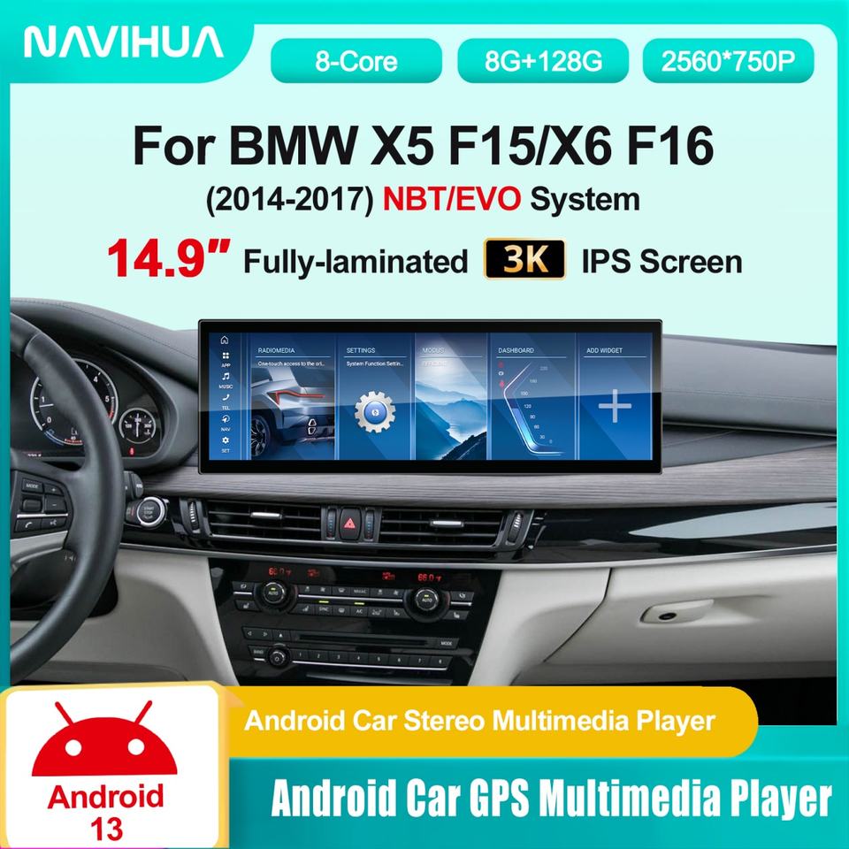 Navihua Nouvelle mise à niveau 14,9'' Autoradio Android GPS Navigation Multimédia Carplay Auto Stéréo pour BMW X5 F15 X6 F16 2014-2017