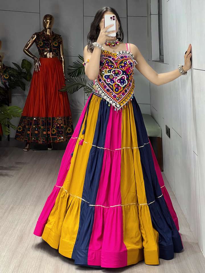 Nom du produit:Navratri Porter Rayonne Avec Miroir Kutchi Travail Lehenga Choli