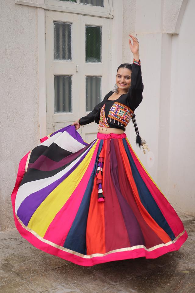 Nom du produit:Navratri Roman Avec Gamthi Brodé & Miroir travail Lehenga Choli