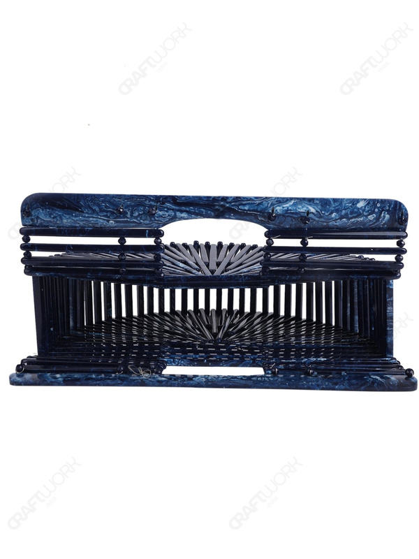 Pochette de soirée semi-circulaire en acrylique bleu marine, design architectural, pour acheteurs en gros, OEM et sous marque privée