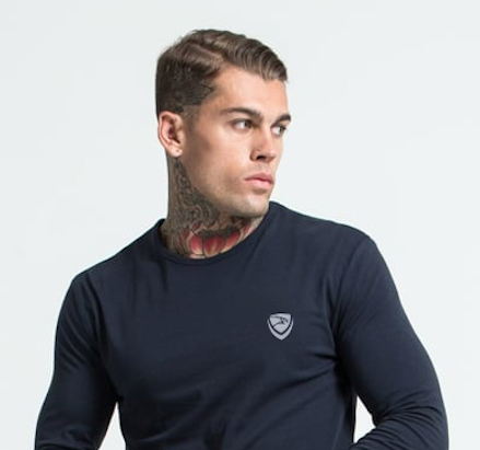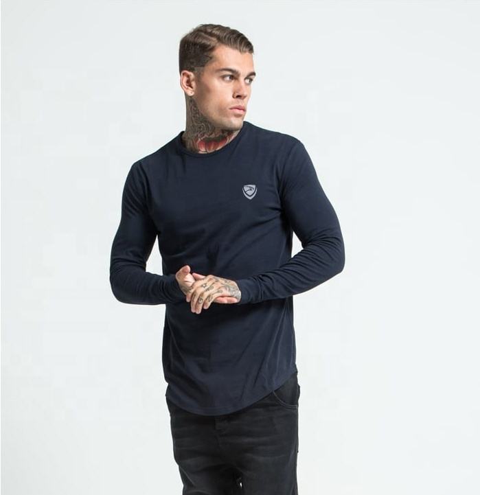 Bleu marine 100% coton de haute qualité personnalisé vierge à manches longues pour hommes T-shirts pour hommes
