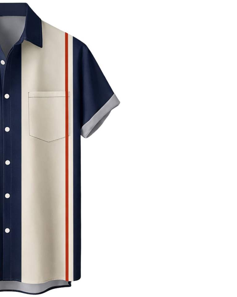 Chemise boutonnée à manches courtes à imprimé géométrique rétro bleu marine et beige, décontractée, été, homme, fabricant OEM, fabrication sur mesure, approvisionnement en gros