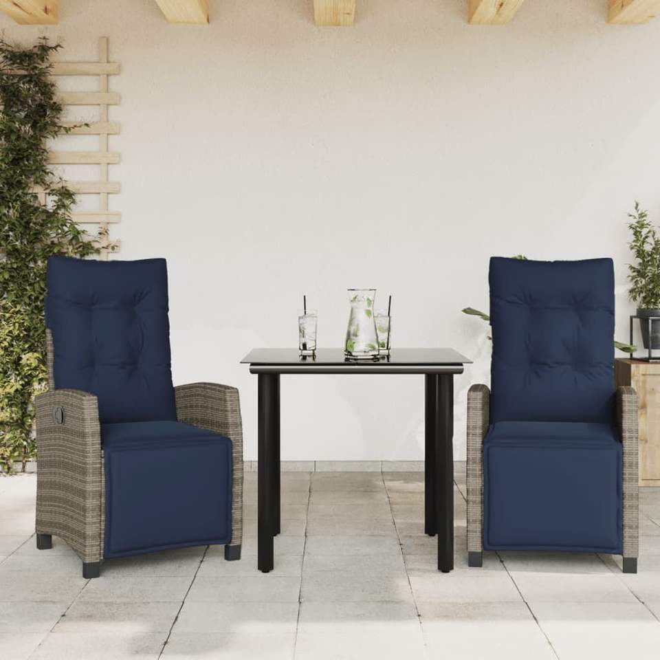 Ensemble de jardin en rotin bleu marine et gris, 2 places, structure en acier, résistant aux intempéries, mobilier d'extérieur au design contemporain