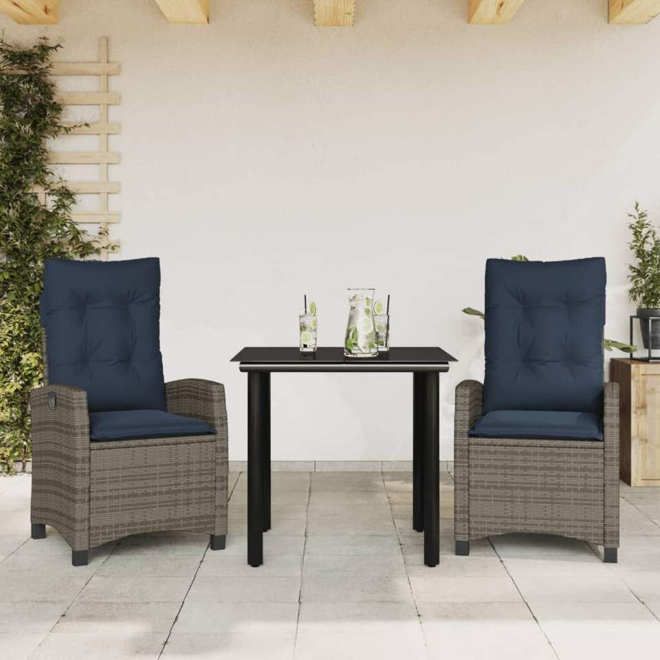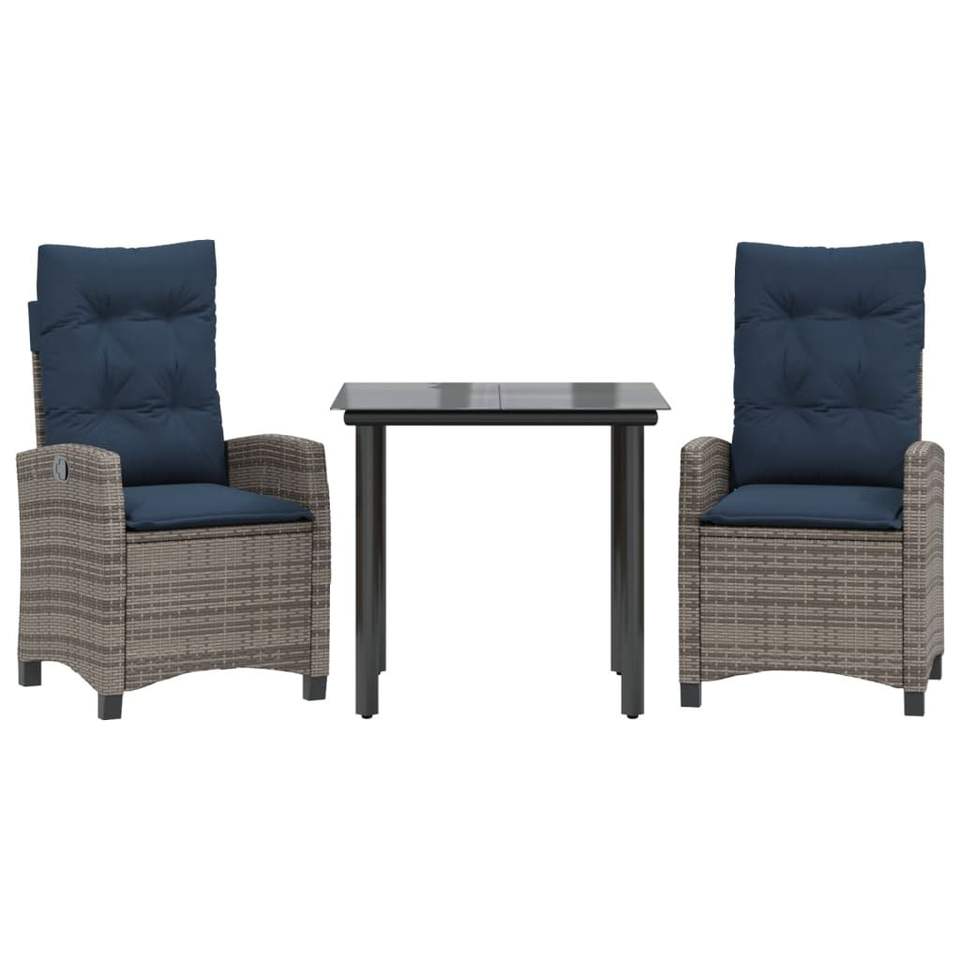 Ensemble de salle à manger de jardin en rotin bleu marine et gris, 2 places, résistant aux intempéries, mobilier d'extérieur de style contemporain