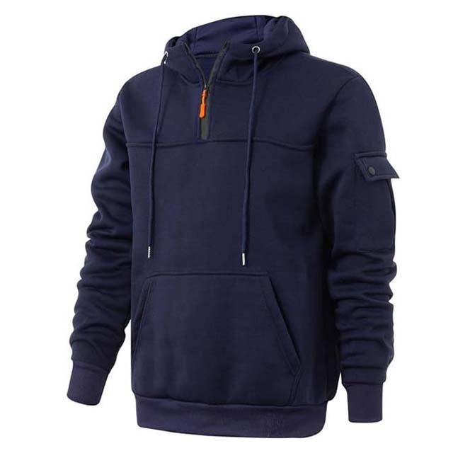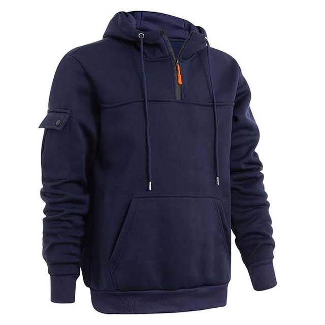 Couleur bleu marine demi fermeture éclair surdimensionné à manches longues avec poches 300g 100% coton respirant hommes sweats à capuche et sweat-shirts basiques