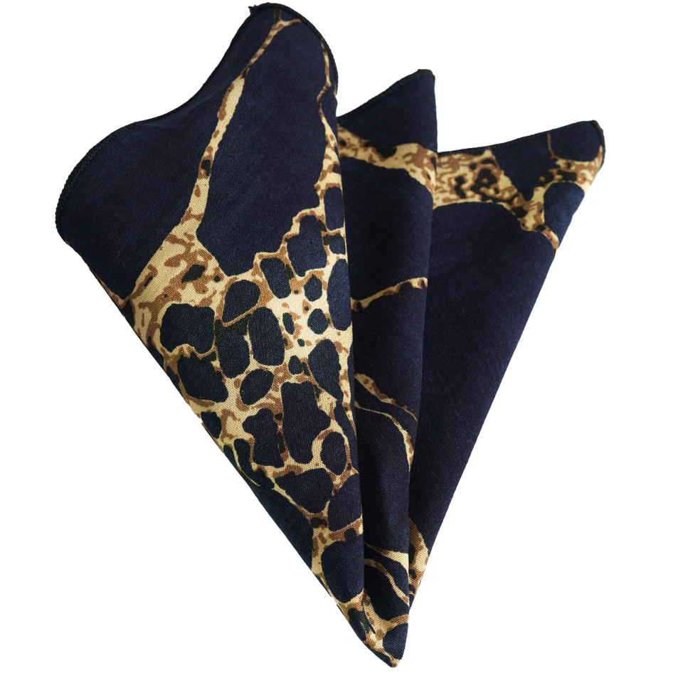 Foulard en Viscose Naturelle Bleu Marine Doré à Motifs Abstraits