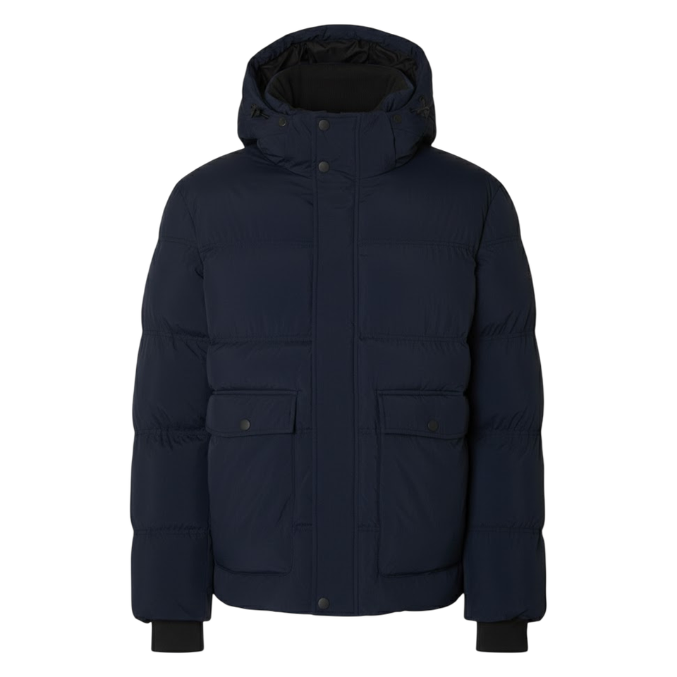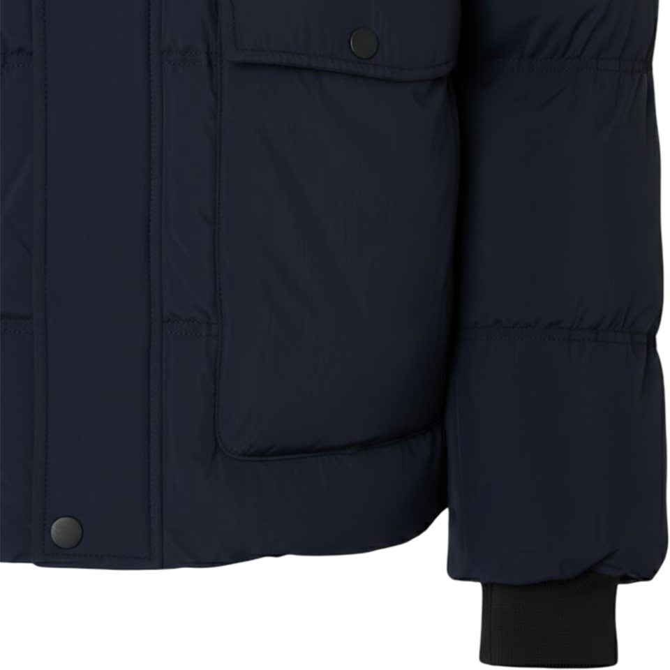 Veste matelassée standard pour homme bleu marine, coupe-vent, parka d'hiver avec col montant, grandes poches, veste d'extérieur streetwear matelassée