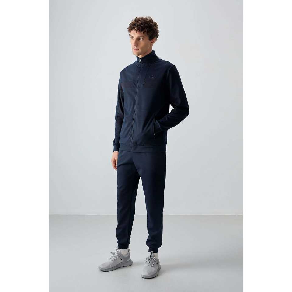 Ensemble de survêtement bleu marine pour homme, coupe standard, décontracté, respirant, tissu 360 grammes