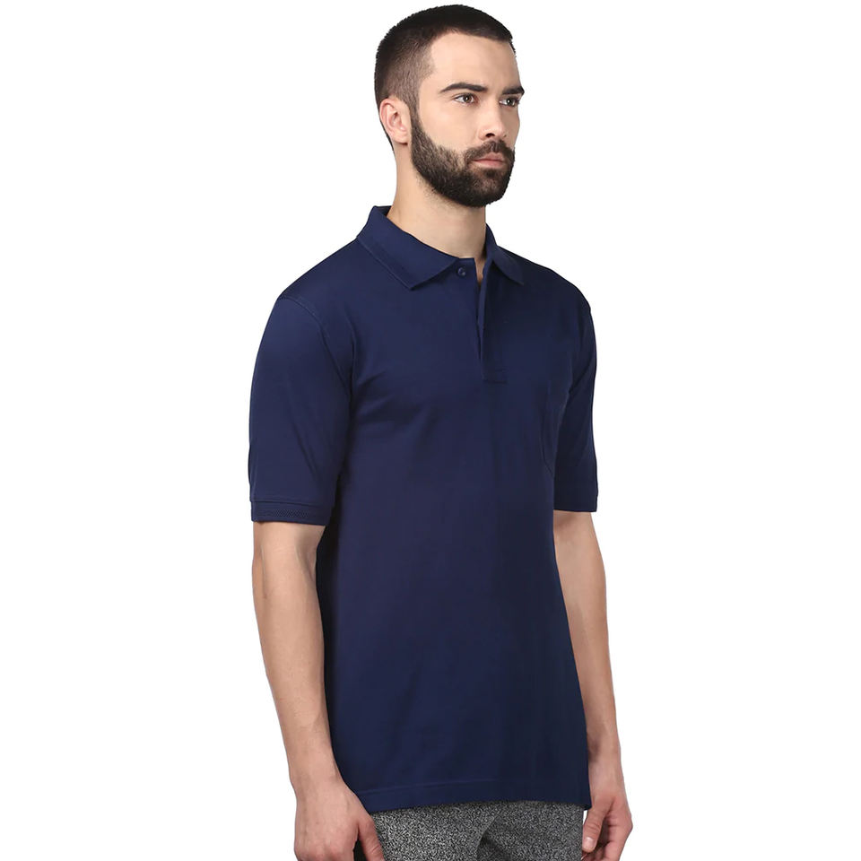 Bleu marine pour hommes pour polos à séchage rapide demi-manche solide motif col tournant Anti-rides Anti-boulochage caractéristiques compressé De