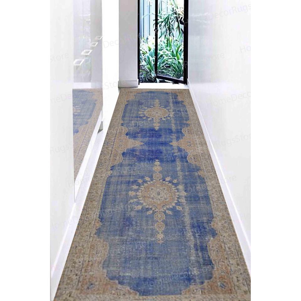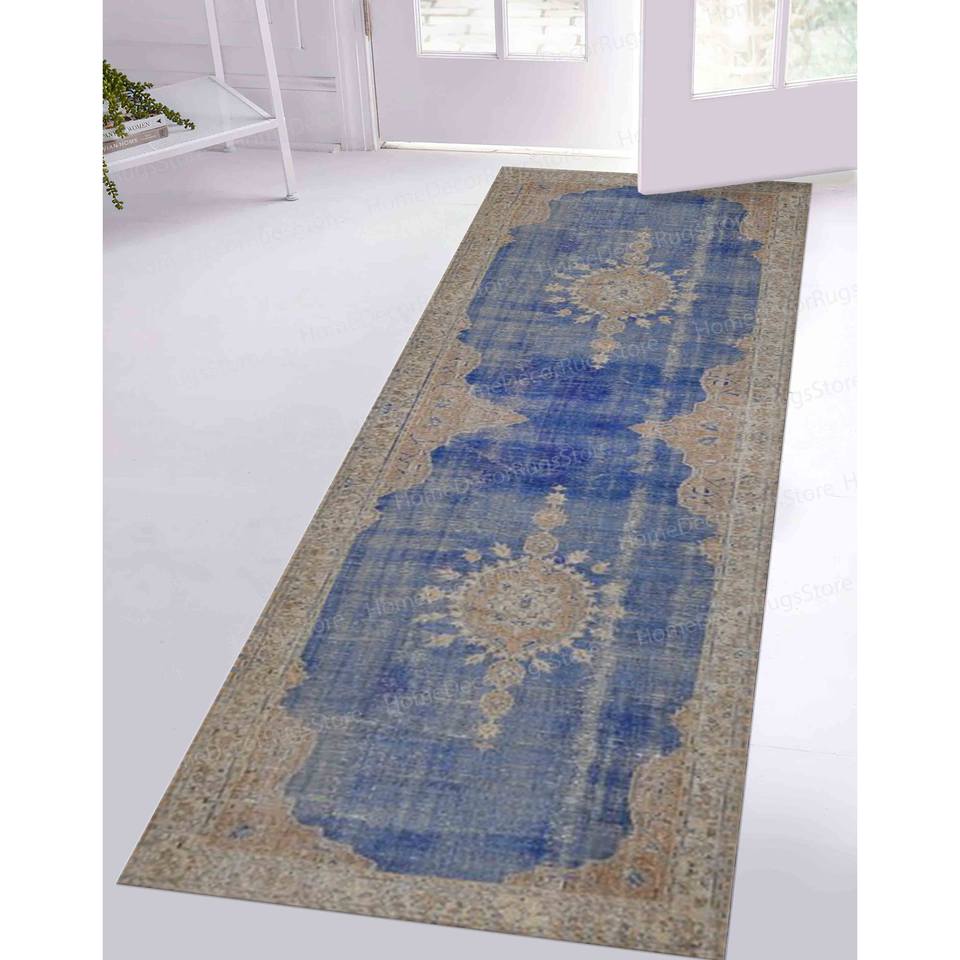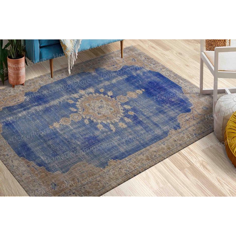 Tapis imprimé bleu marine : motifs orientaux et turcs estompés et doux, tapis en velours de luxe