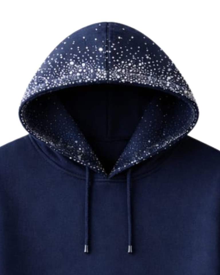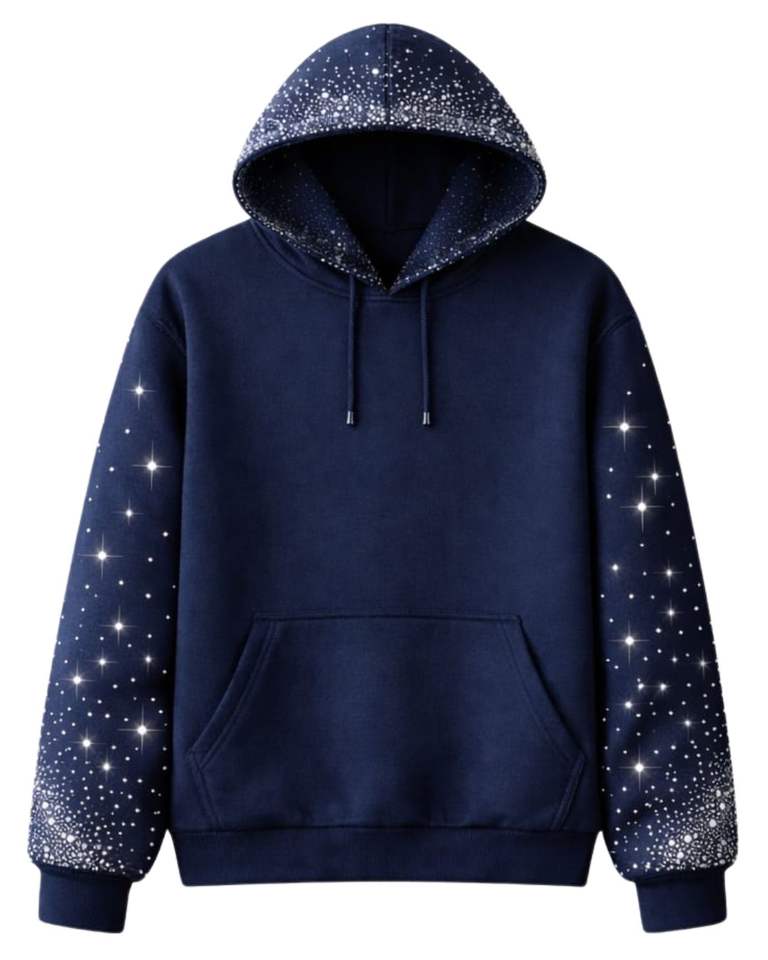 Sweat à capuche bleu marine avec étoile en strass, coupe oversize, en molleton épais, avec poche kangourou, personnalisable, pour homme, style streetwear