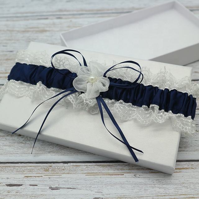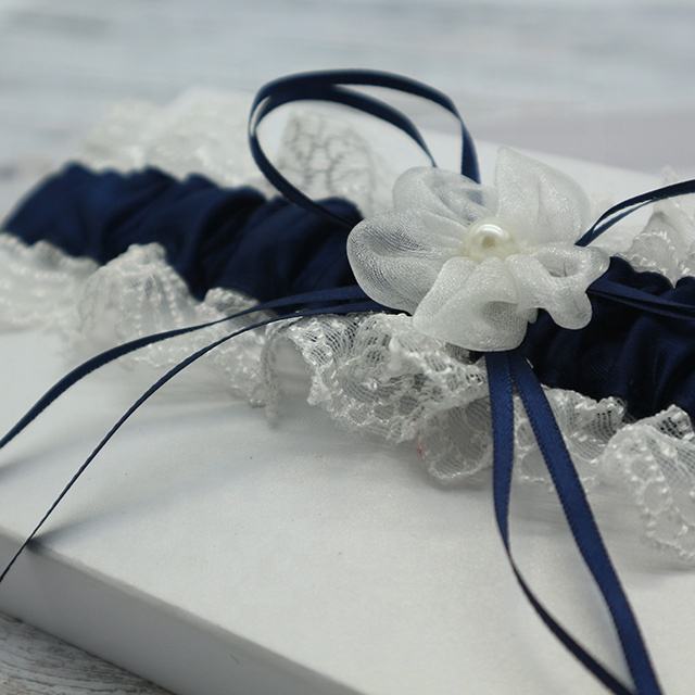 Nom du produit:Jarretière ruban bleu marine avec dentelle