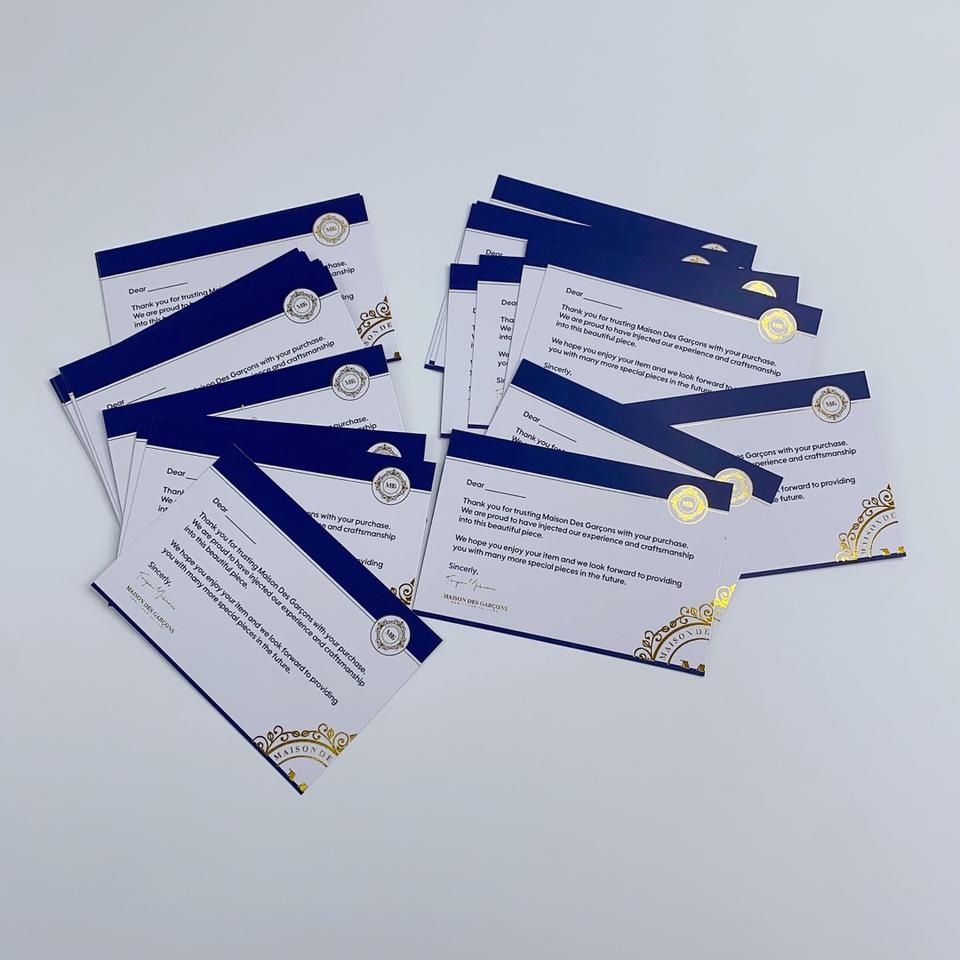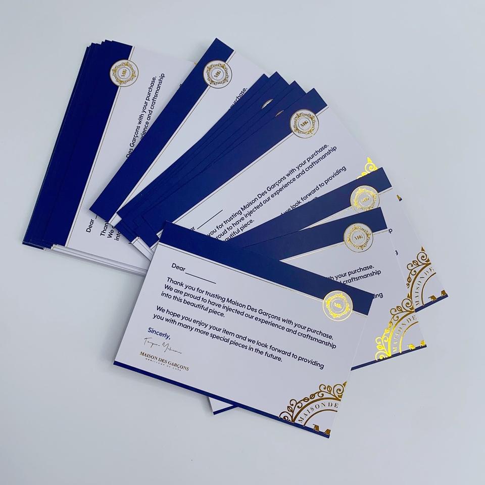Cartes de remerciement bleu marine avec emblème doré - Cartes de vœux de luxe pour bijoux et marques haut de gamme