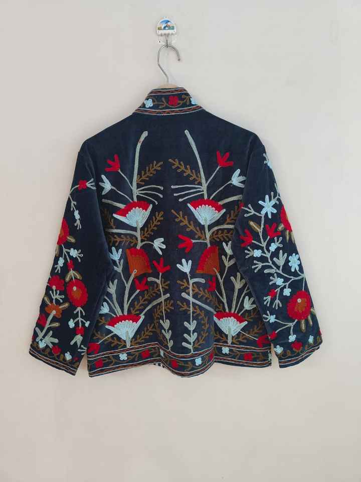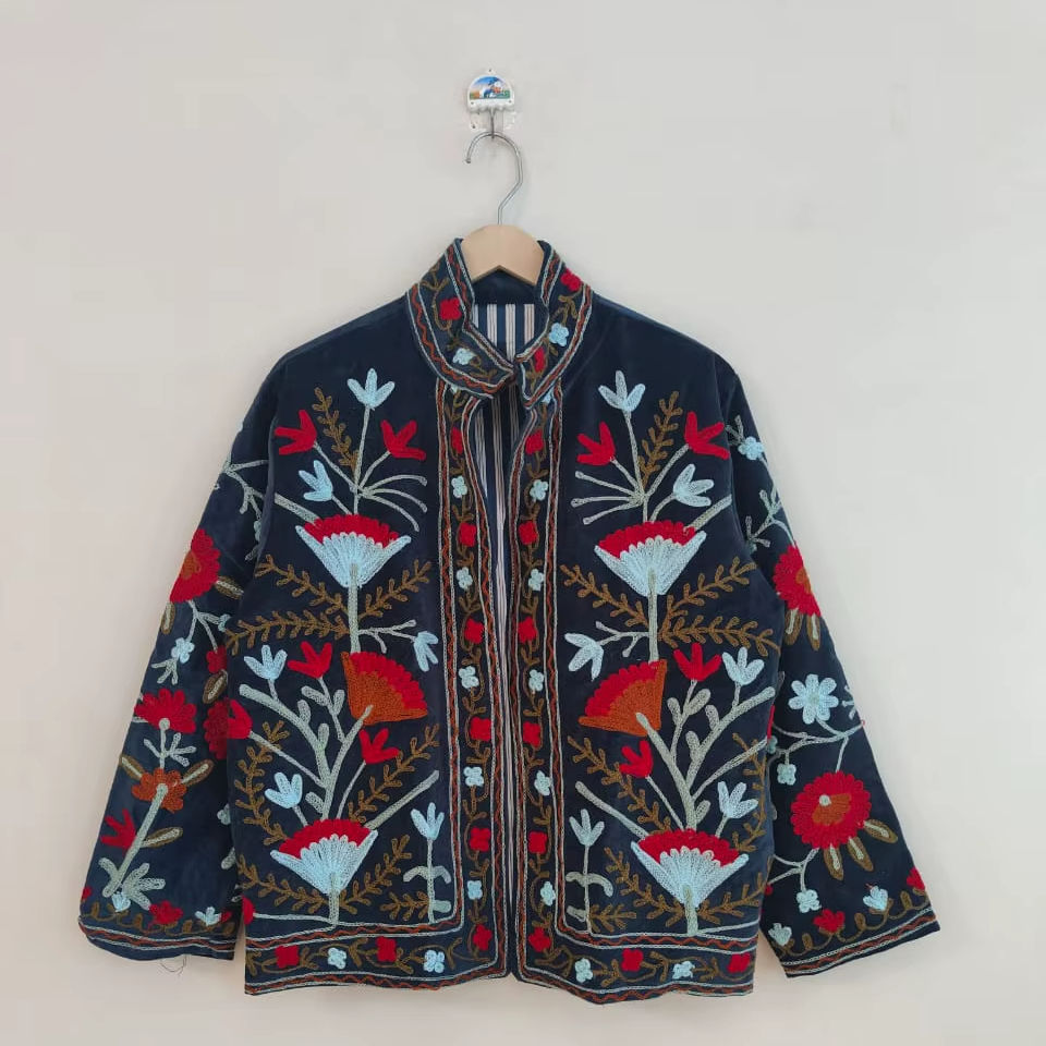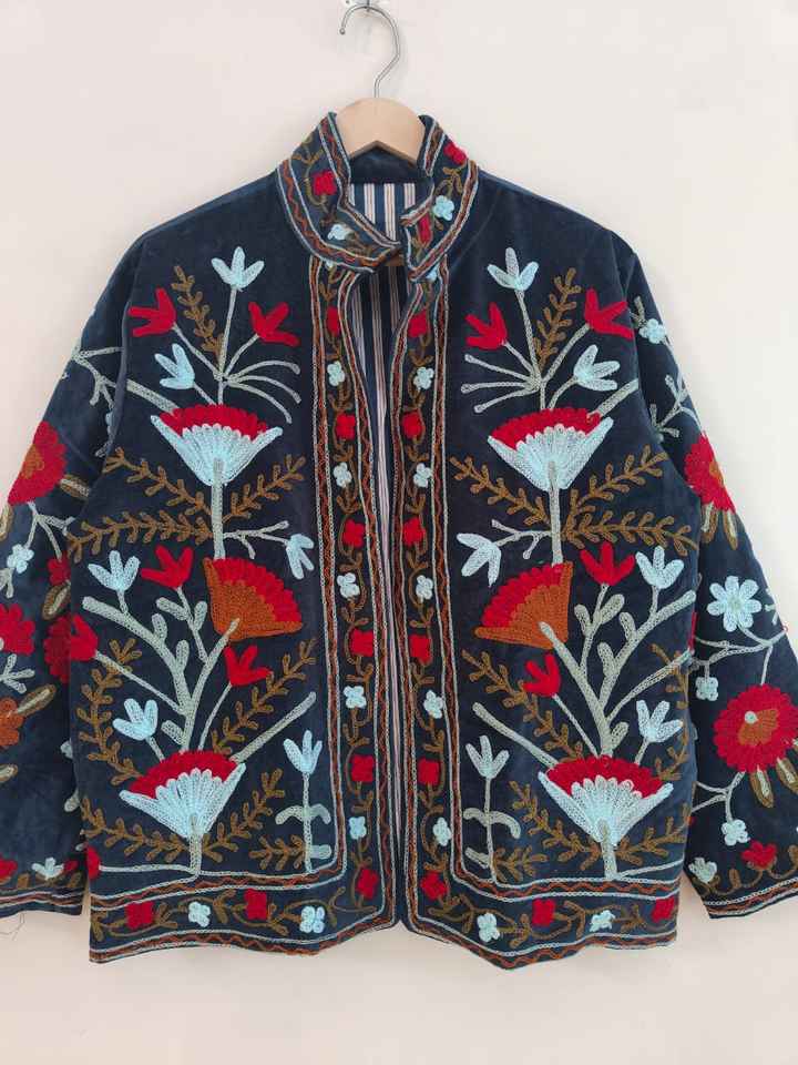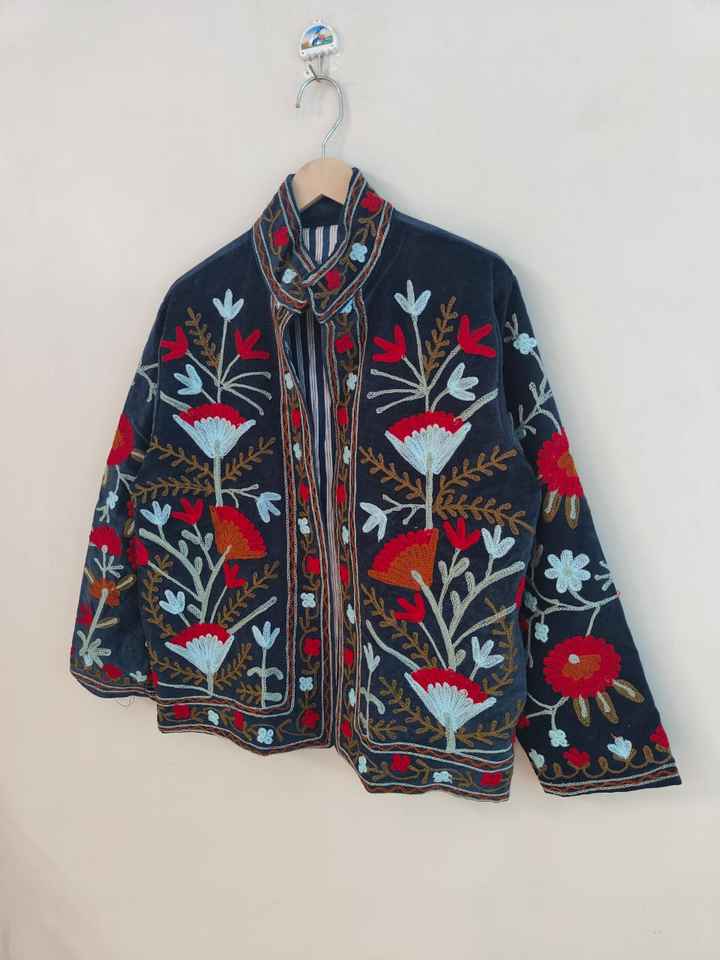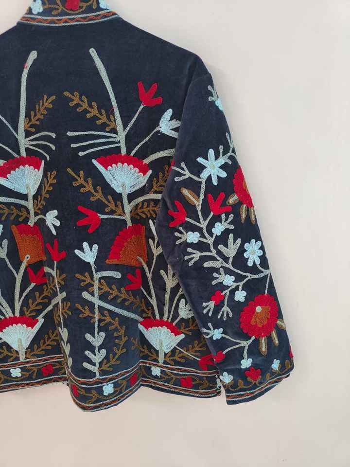 Veste en velours bleu marine brodée à la main style indien, robe de mariée bohème, veste de festival, cadeau de Noël