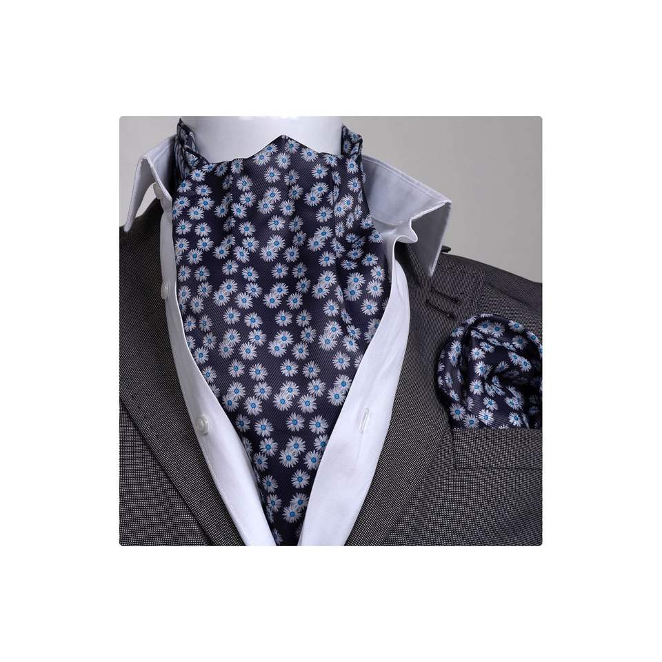 Ensemble de mouchoirs pour homme avec écharpe bleu marine et marguerite blanche