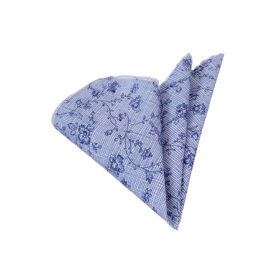 Navy Blue on Blue Floral Printed Cotton Collar Pocket Square