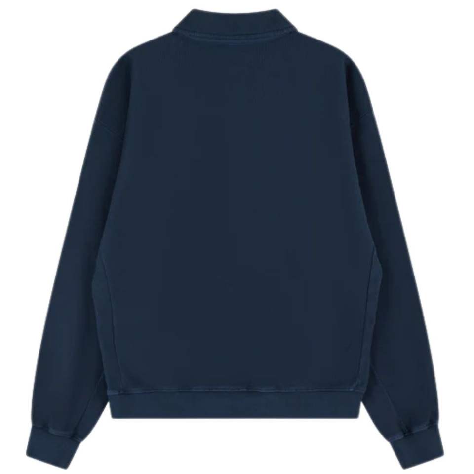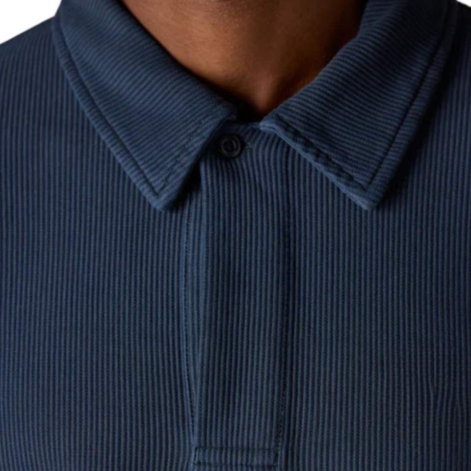 Sweat-shirt polo côtelé épais délavé bleu marine à manches longues et col tricoté, style décontracté pour homme, coupe confortable, qualité supérieure