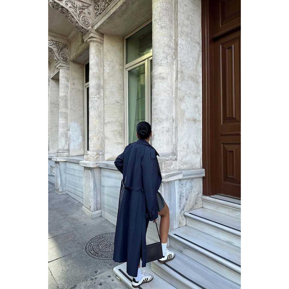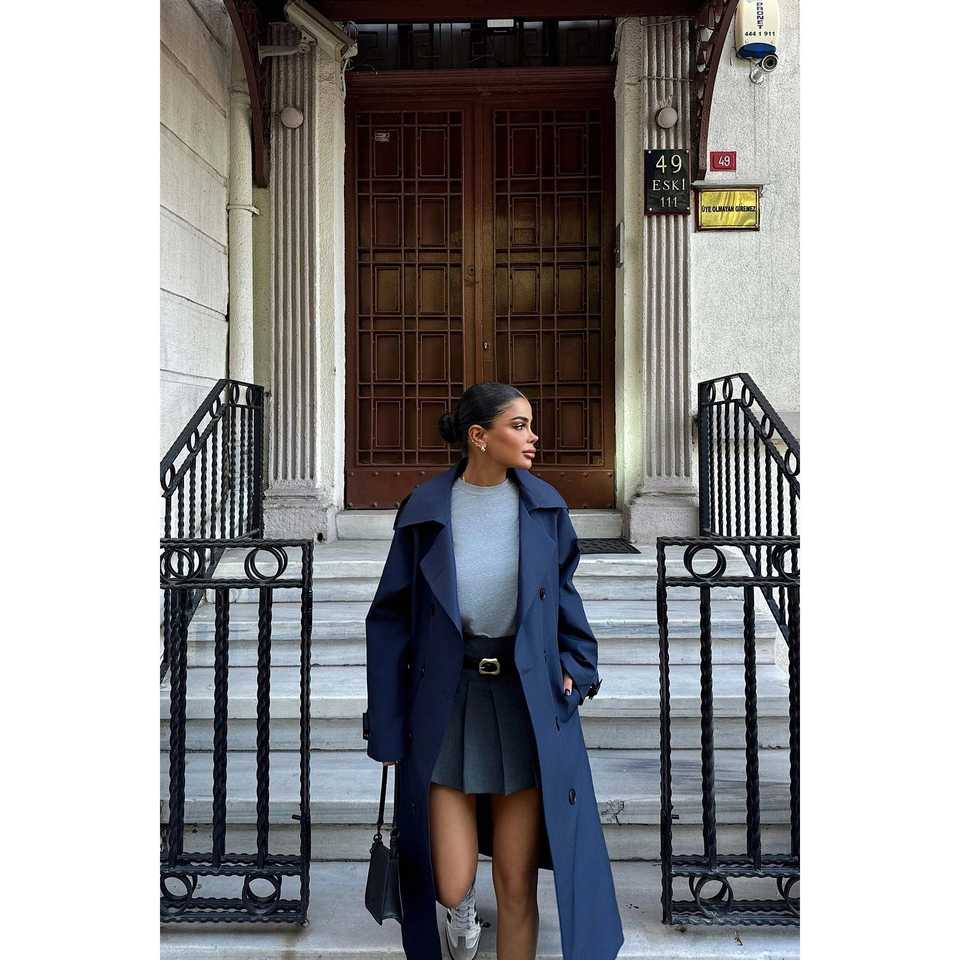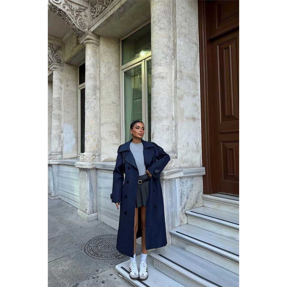 Navy Osanna Women's Trench Coat Print Waterproof Leather Casual Style Belt Closure Cashmere Cotton Custom for Spring Winter