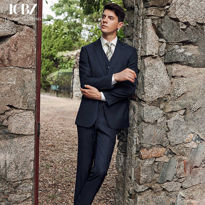 Costume de cérémonie bleu marine pour homme, style coréen professionnel, coupe ajustée, idéal pour les banquets et les occasions formelles