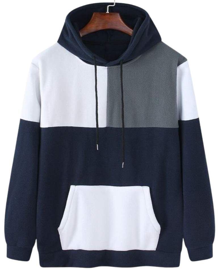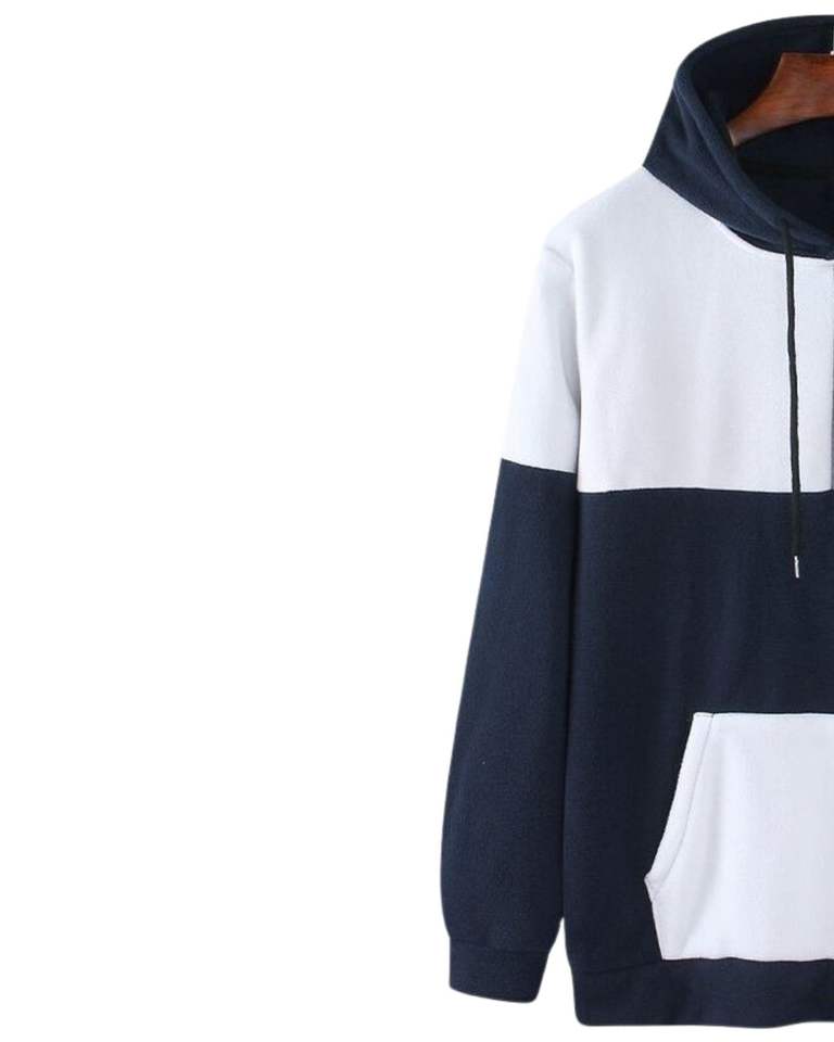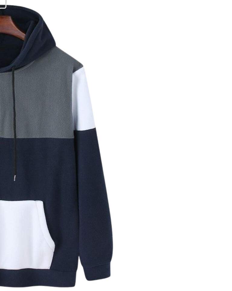 Sweat à capuche colorblock bleu marine, blanc et gris avec poche kangourou, polaire chaud, streetwear décontracté, pull unisexe, vêtement confortable et tendance