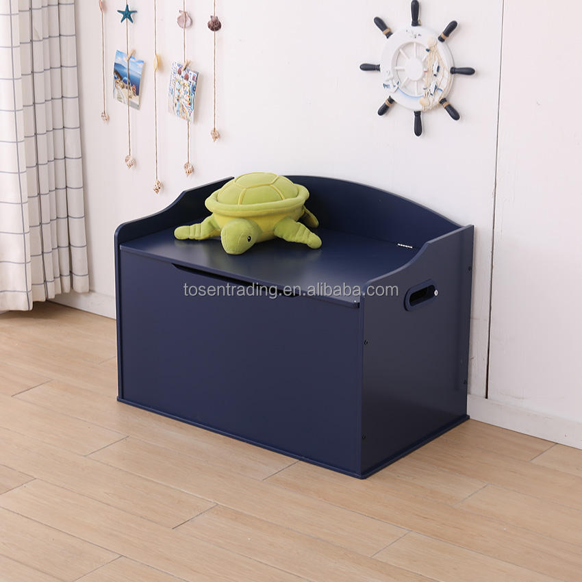 Banc de rangement en bois classique bleu marine Austin avec couvercle à charnière de sécurité, grande capacité, armoire de rangement pour enfants, boîte à jouets
