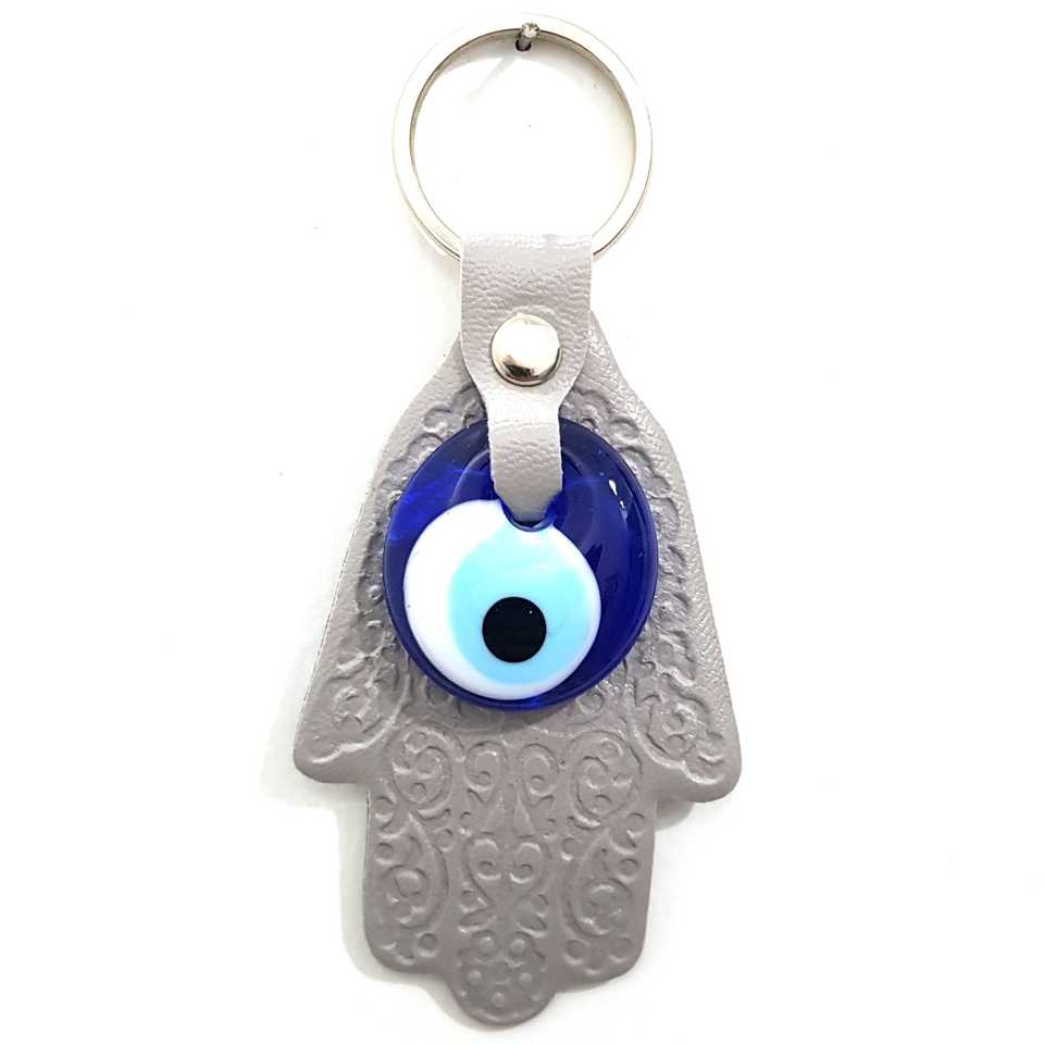 Nazar Boncuklu Deri Fatıma'nın Eli Anahtarlık Hamsa Anahtarlık Gri Anime Keychain Toys