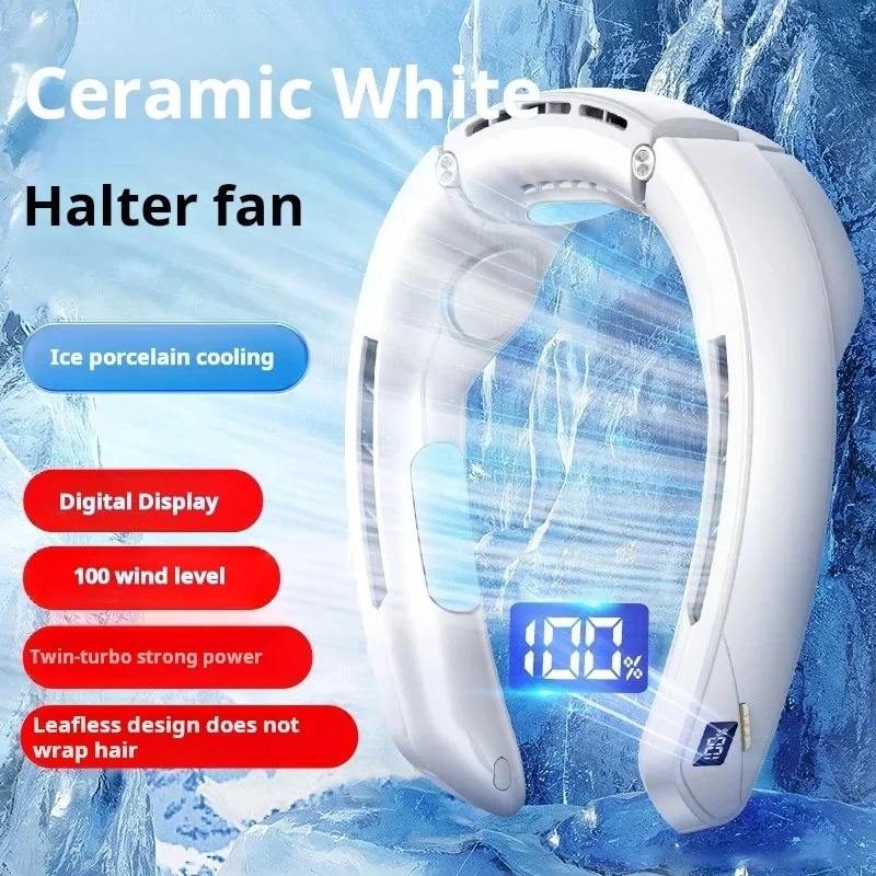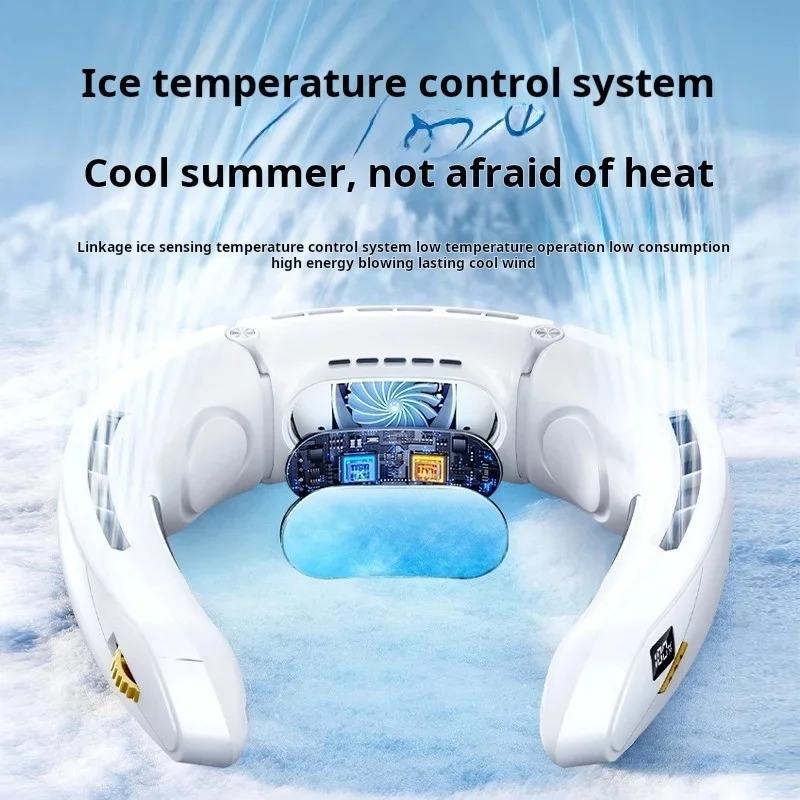 Ventilateur de cou portable, climatiseur personnel, 100 vitesses, refroidissement rapide, affichage numérique, rechargeable par USB, capacité 4000 mAh