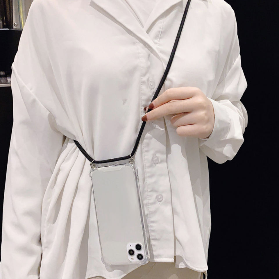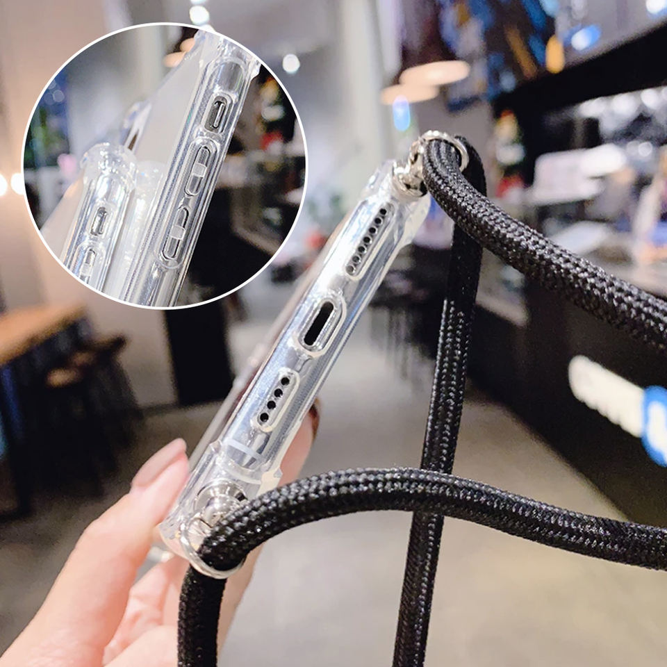 Collier bandoulière étui de téléphone étui acrylique antichoc transparent avec sangle cordon corde pour iPhone 16 15 Pro Max Samsung S24 Plus