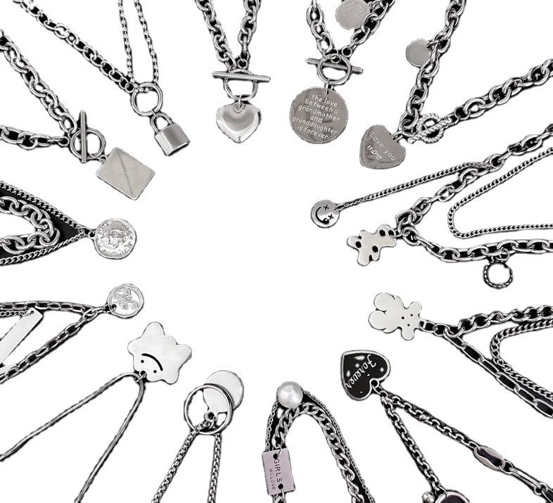 Collier Mixte Kilo Vendu 40 ~ 50, Titane Acier, perles, pendentifs, Acier inoxydable, alliage, Diamant, hip Hop,Sweet Style
