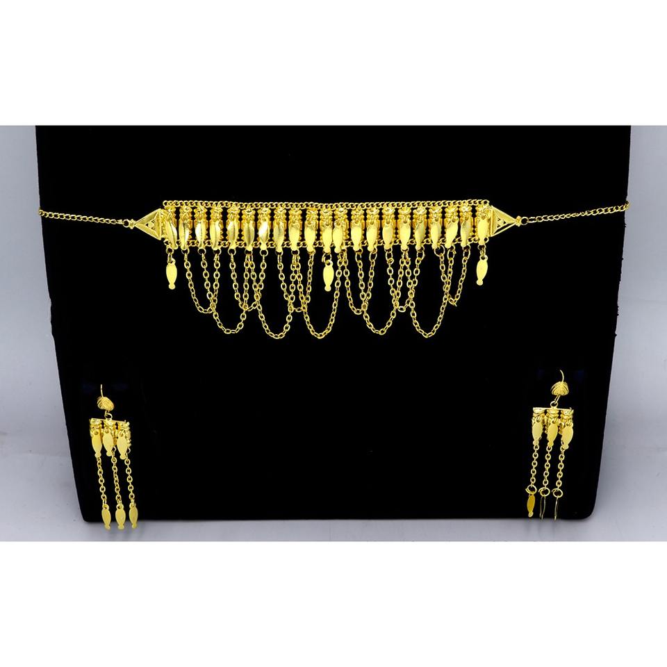 Collier avec boucles d'oreilles Parure de bijoux en laiton pur plaqué or Haute qualité Uae Dubai Collier Design Collier Bijoux martasha