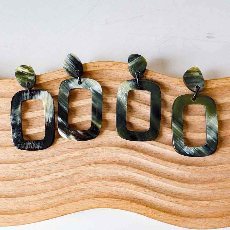 Ensemble collier et boucles d'oreilles avec boucles d'oreilles en corne de buffle marron et noir exquis