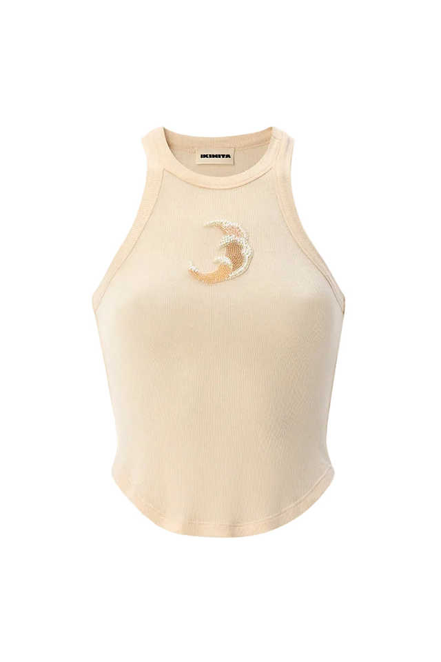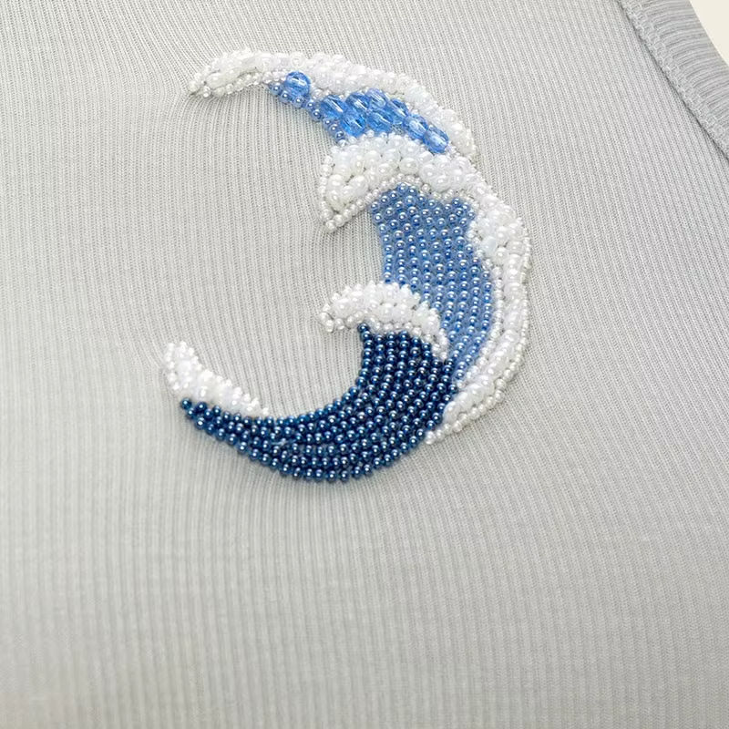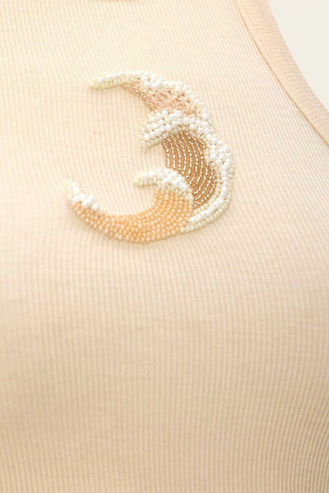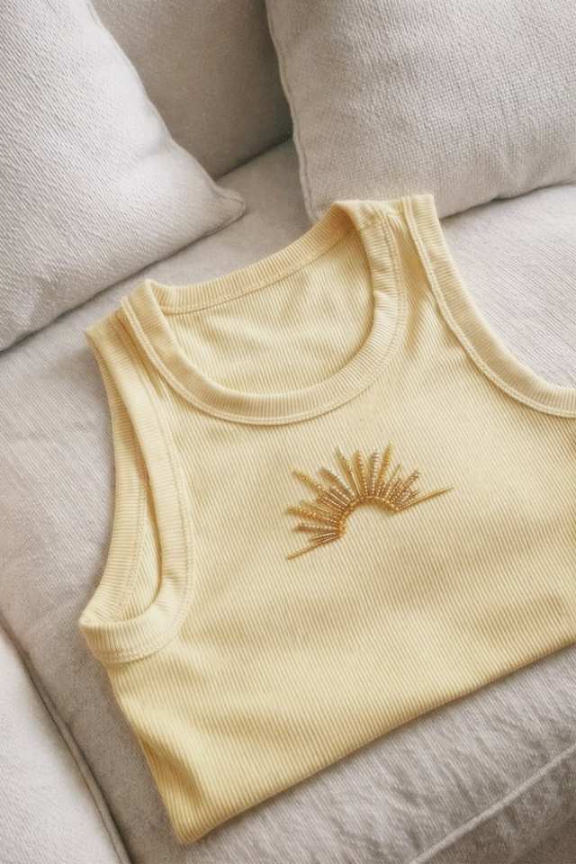Débardeur brodé à la main avec perles pour femmes, débardeur de créateur pour femmes avec broderie perlée