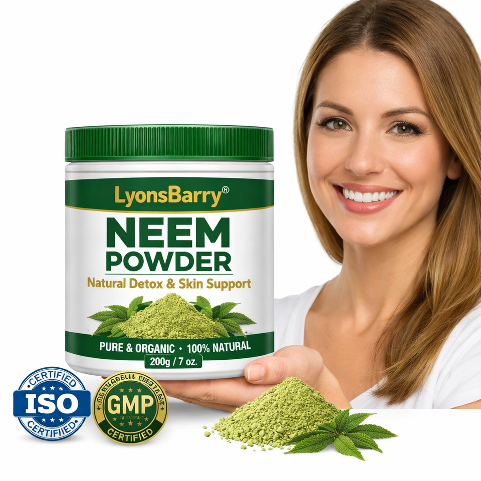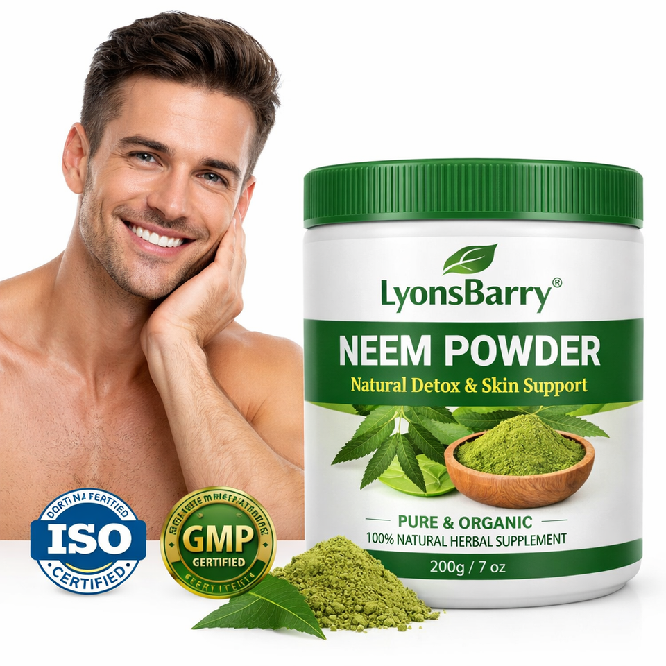 Poudre de Neem Herbacée Lyonsbarry, Détox Naturelle, Soutien Cutané, Antioxydant, Végétalien, Dose de 500mg, Usage Adulte, Marque Privée OEM