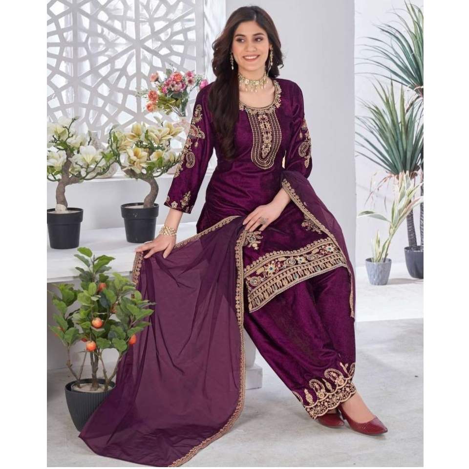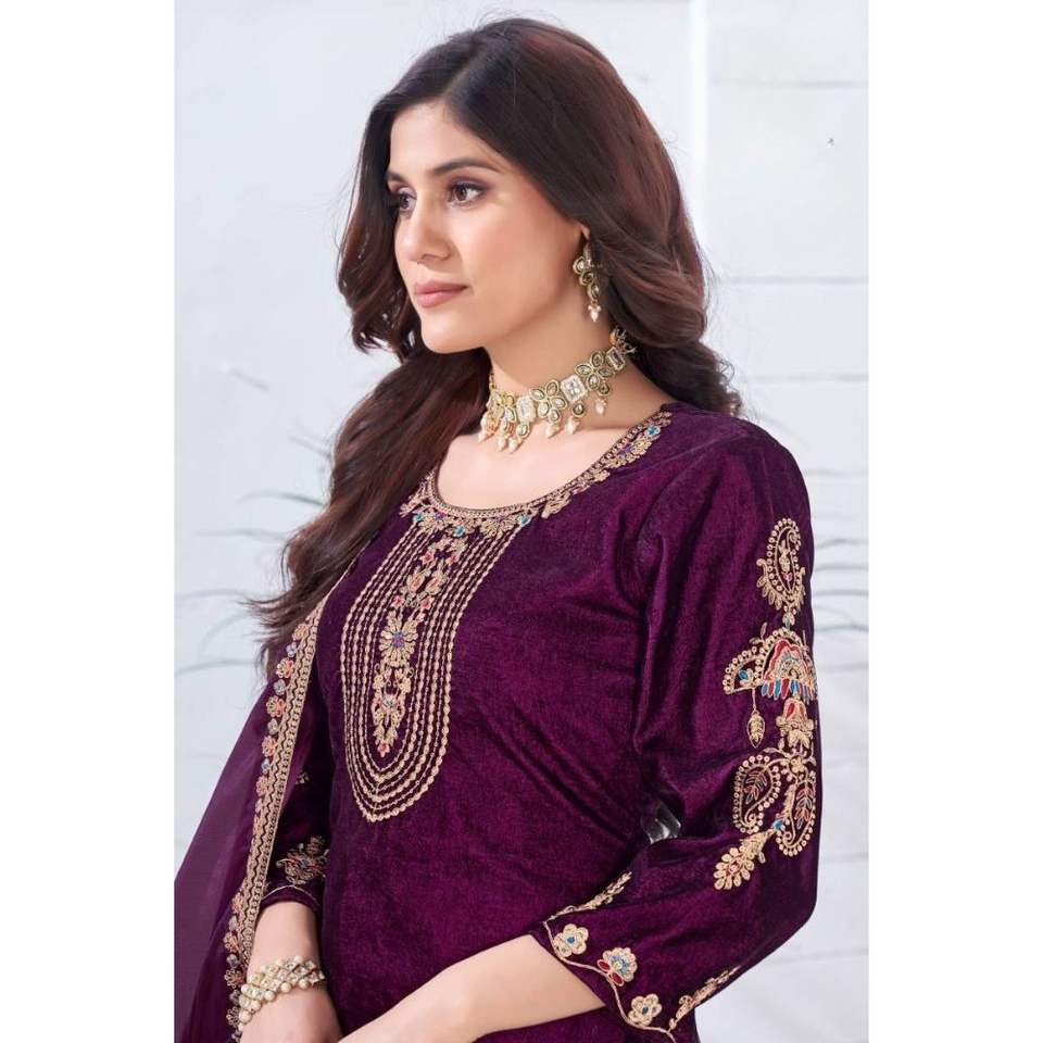 Top/Bottom/Dupatta:Velvet With Naylon Organza Dupatta With Jarsodi Zari Embroidery