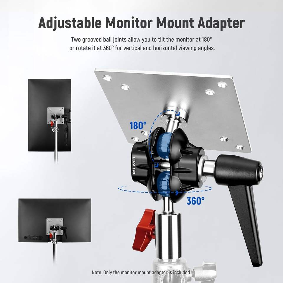 Adaptateur de montage d'écran Neewer (lot de 2) en alliage d'aluminium, adaptateur de support d'éclairage à double rotule, vis M4 et récepteur 5/8 pour écran Impact