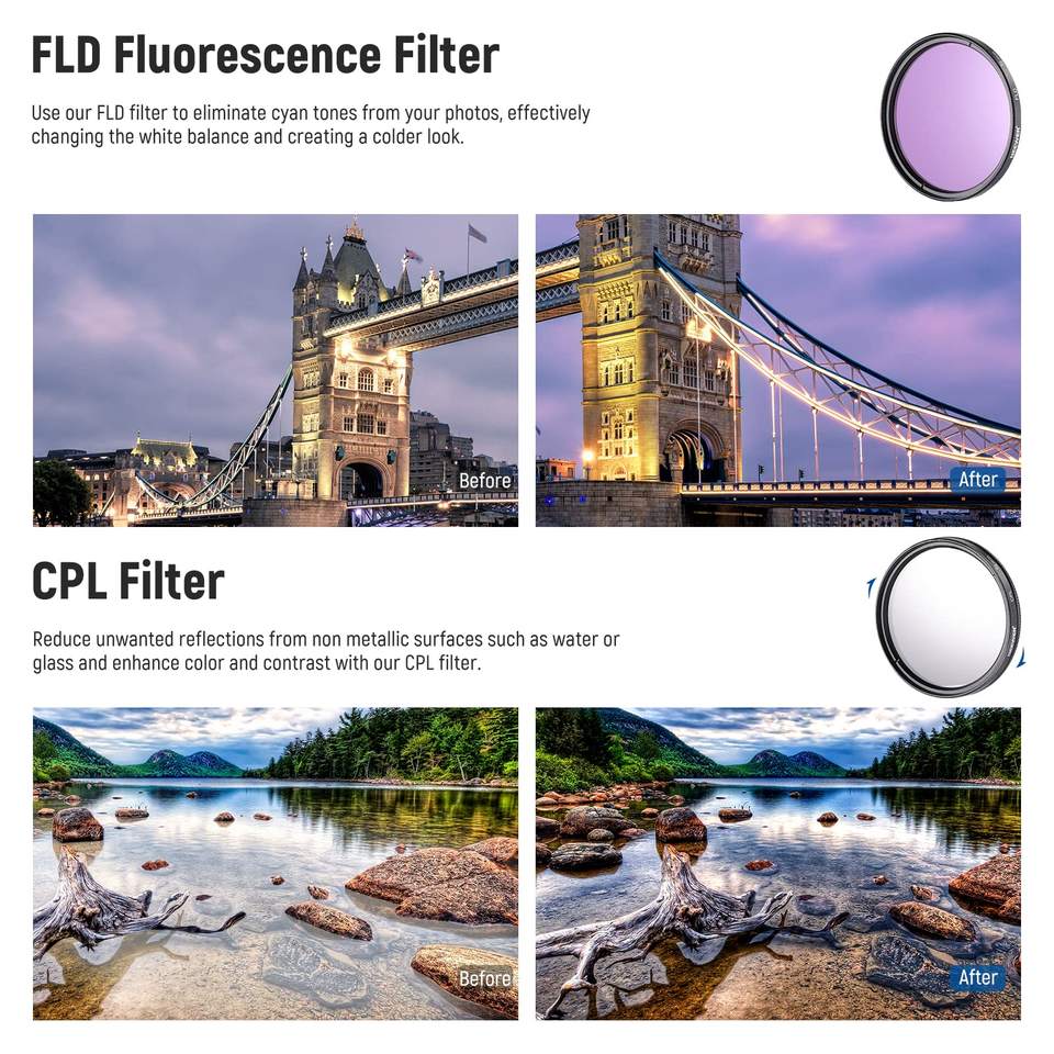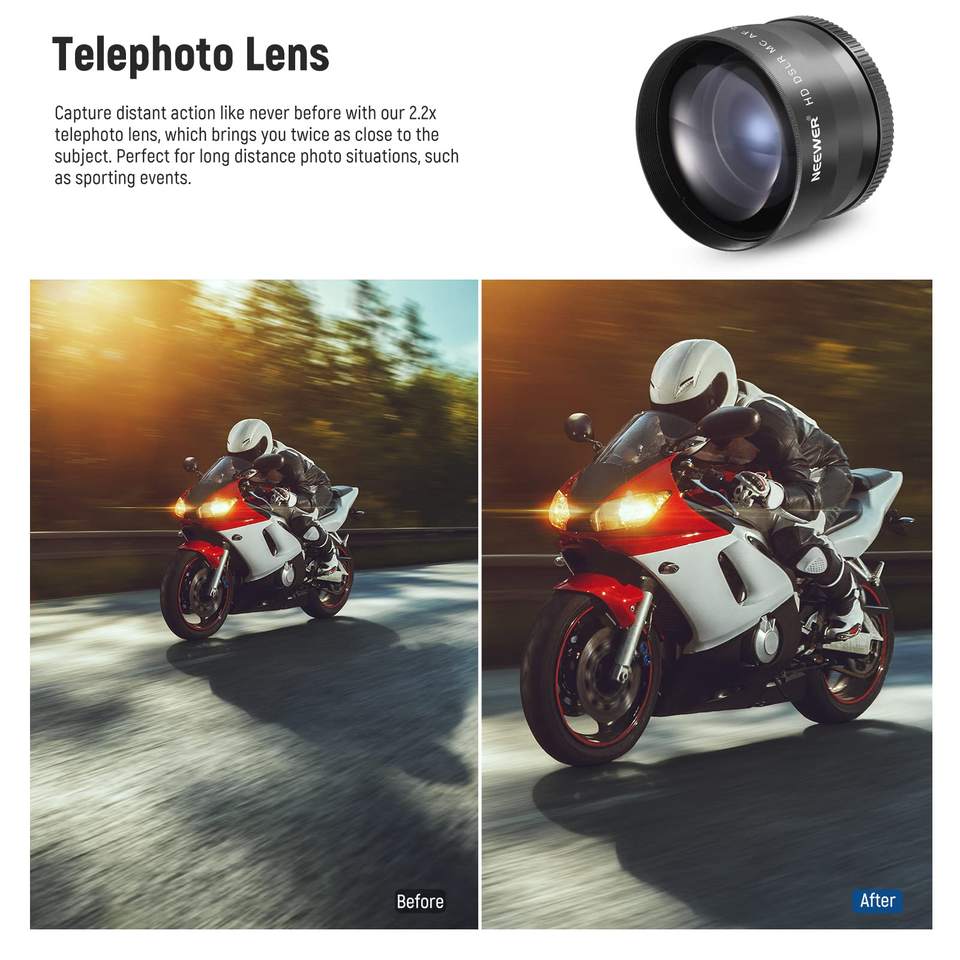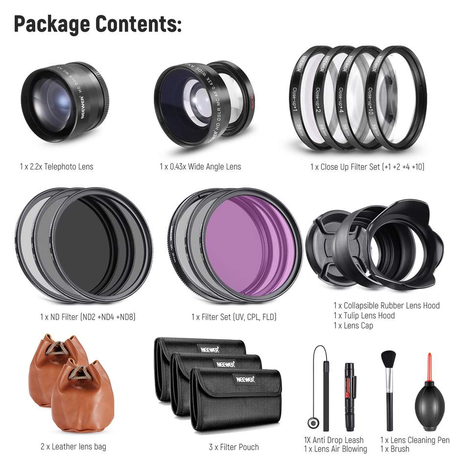 Ensemble d'objectifs et de filtres Neewer 58 mm, objectif grand angle 2,2x, objectif téléobjectif, filtres macro/ND/UV/CPL/FLD pour appareils photo APS-C