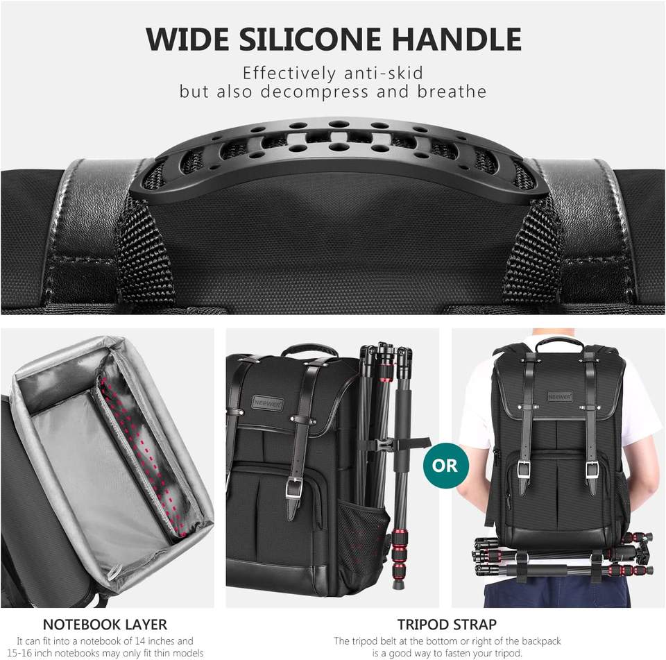 Sac à dos pour appareil photo Neewer, sac à dos de photographie imperméable et durable avec housse de pluie pour appareil photo reflex numérique, objectif et accessoires