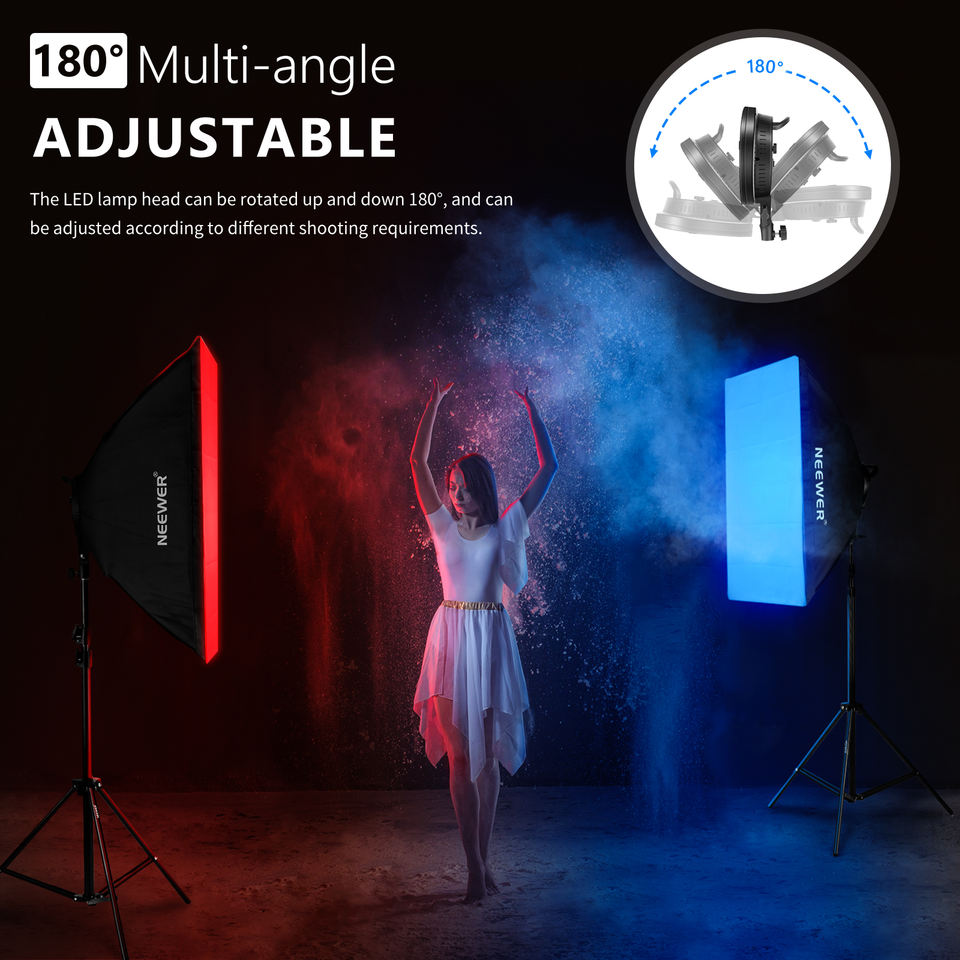 Neewer – Kit d'éclairage LED RGB avec télécommande 2.4G: lot de 2 têtes d'éclairage LED avec 3200 ~ 5600K avec boîte à lumière, support pour la photographie en Studio