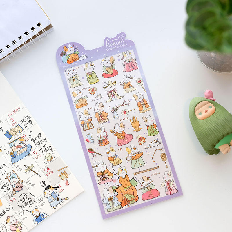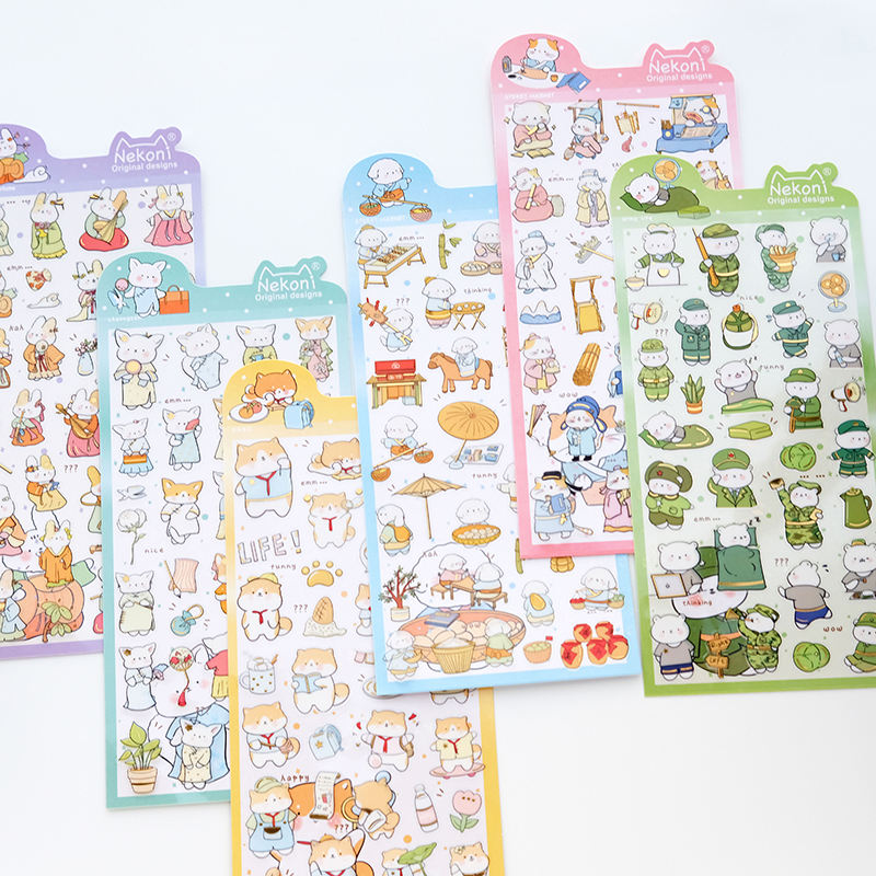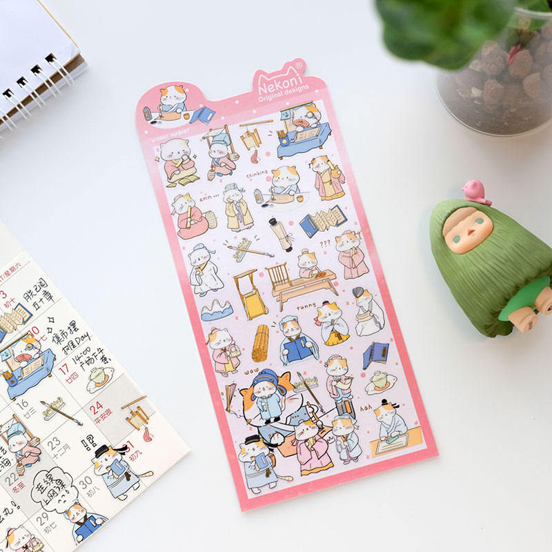 Nekoni Chinese Style Original PVC Stickers Waterproof Stickers Cat Kitty Dog Bear Decal Animal 2D Stickers Sheet