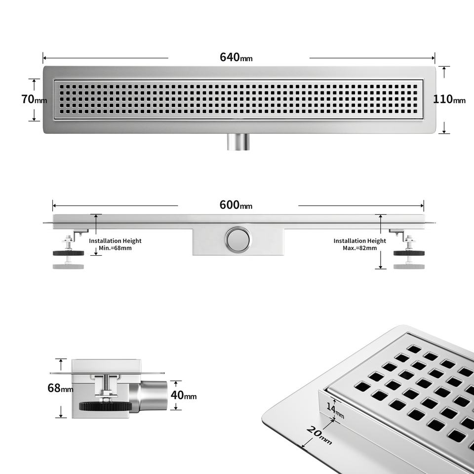 Neodrain Plastic Shower Drain with High Flow Siphon and 360 Degree Rotating Stainless Steel Linear Grate From the Manufacturer O