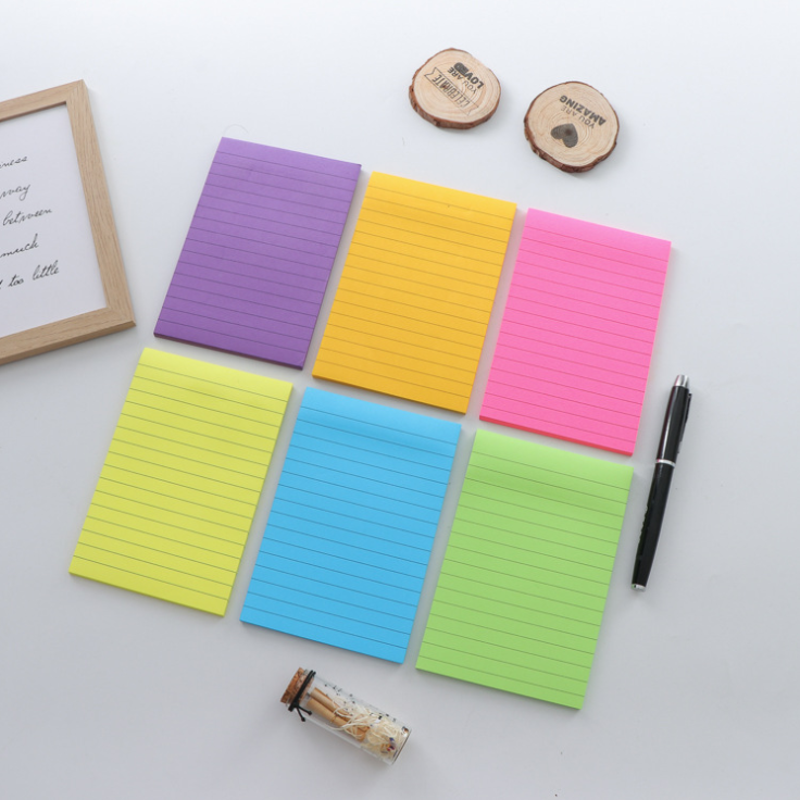 Note stick couleur néon ligne auto-adhésive n fois posté it notes logo personnalisé carnet de notes collant vente en gros