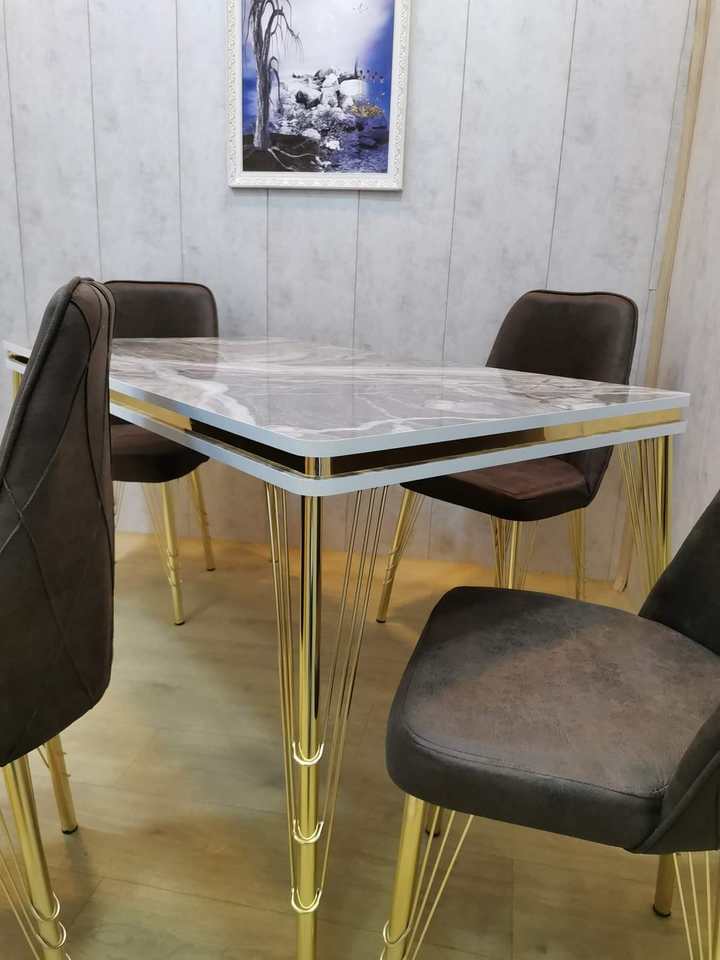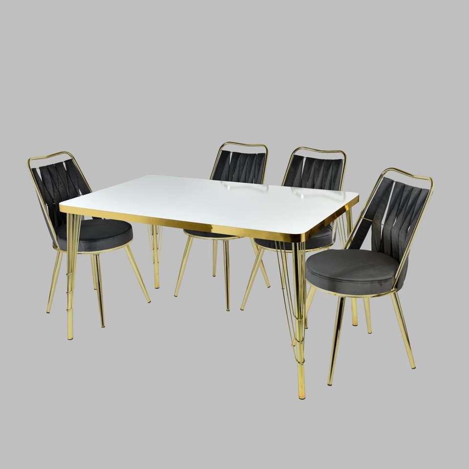 Ensemble de table à manger moderne avec 4 chaises, plateau en verre trempé, pieds en métal, design extensible, écologique, durable, meubles de salle à manger pour la maison